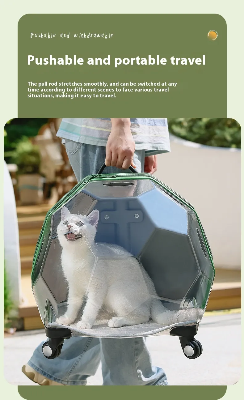Pet Trolley Portable Cat Luggage – Transparent Large Dog Suitcase Trolley Space Capsule