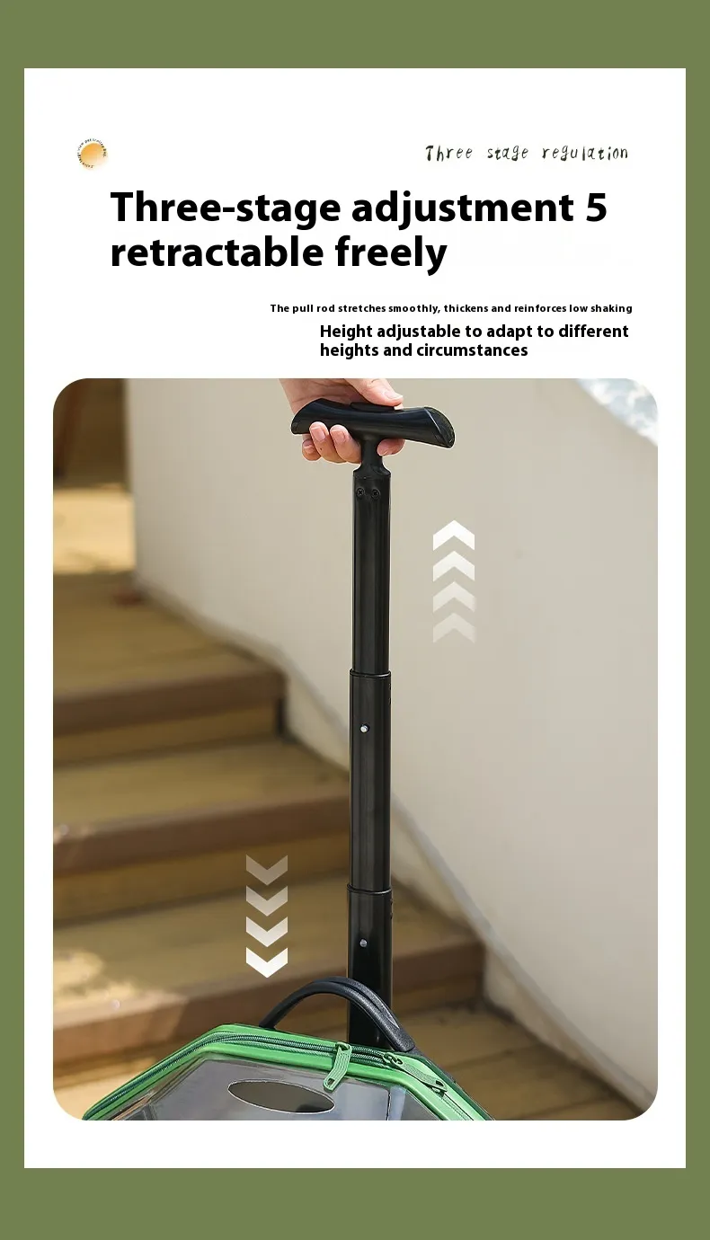 For those traveling by plane, the pet luggage trolley meets the requirements of most airlines for in-cabin pet transport. The transparent case provides visibility, and its compact design ensures it fits comfortably under the seat in front of you, allowing your pet to travel with you in the cabin for maximum comfort.