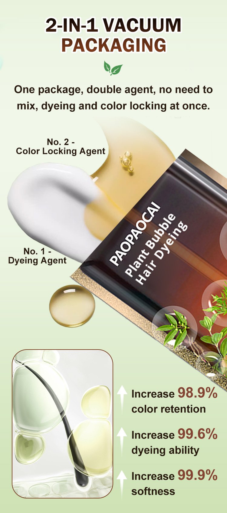 - Hair Coloring and Conditioning: Bubble plant hair dye shampoo, plant hair care essence, it can also protect your hair while dyeing it, and reduce dryness and breakage.Plant Extract Non-Damage Hair Dye Cream