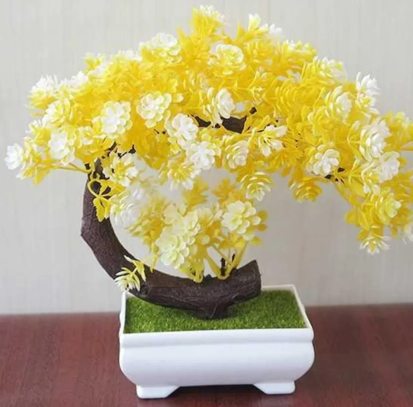 artificial plants for home, low-maintenance bonsai, vibrant fake flowers, faux tree for office, plastic bonsai décor, realistic artificial