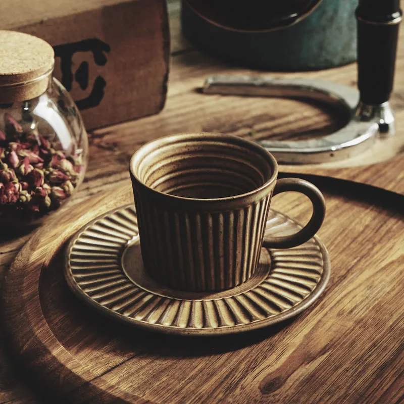 The set includes a matching saucer that complements the design of the coffee cup. Not only does the saucer serve as a practical place to set your cup, preventing spills and protecting your surfaces, but it also adds to the overall aesthetic of the set. The subtle design of the saucer enhances the beauty of the cup, making it a stylish addition to any table.