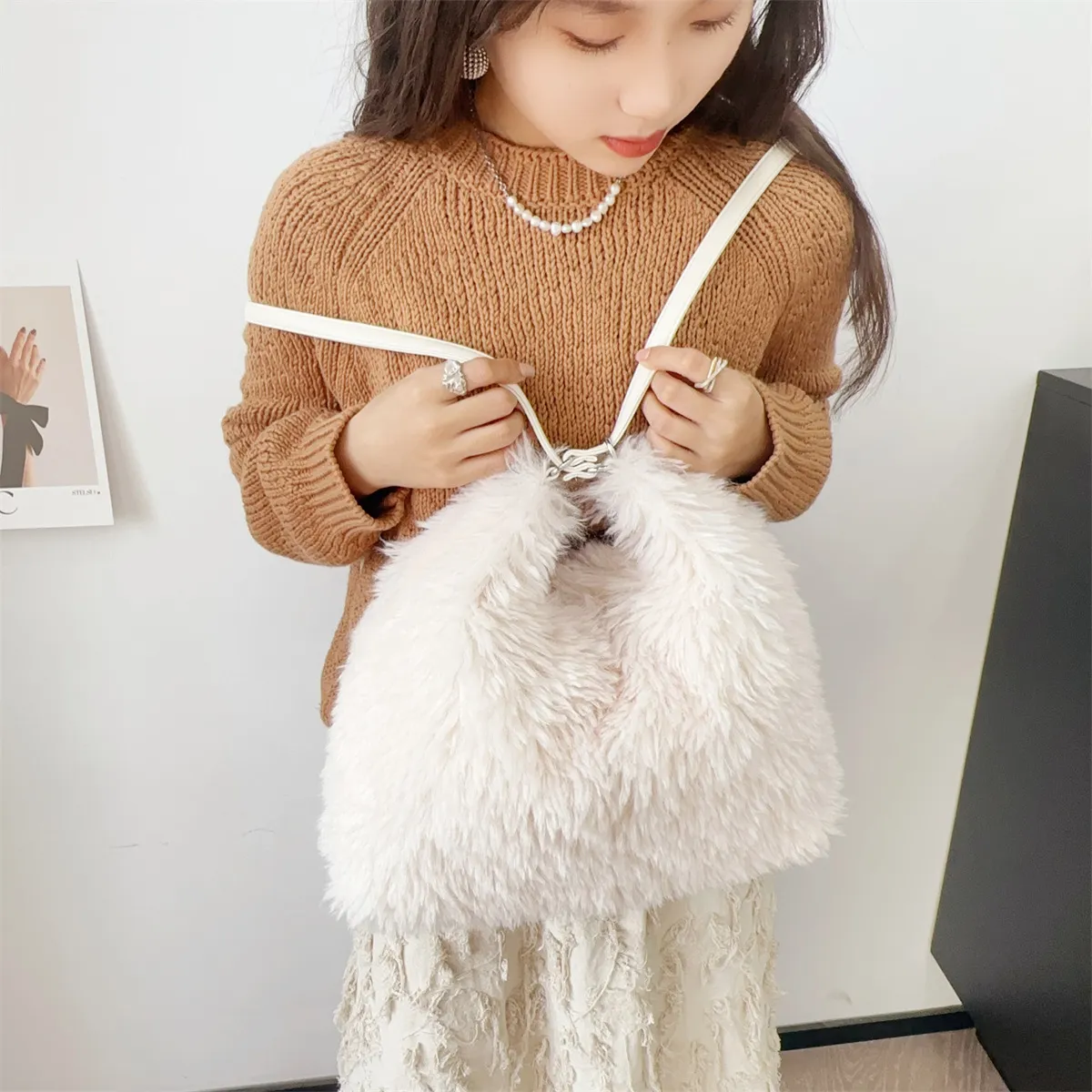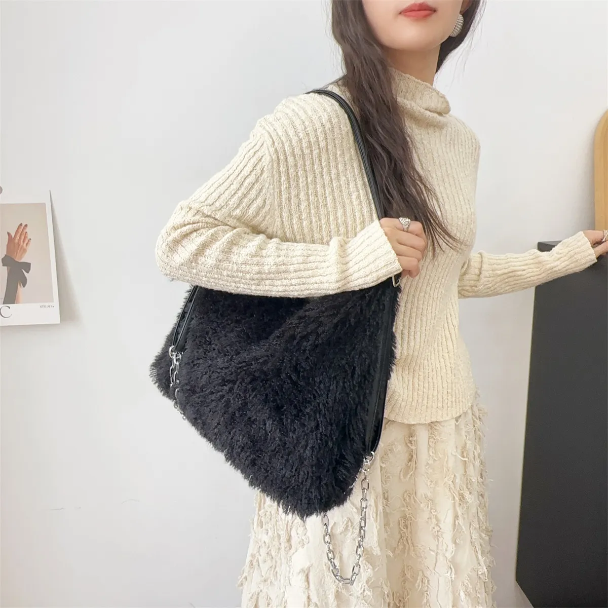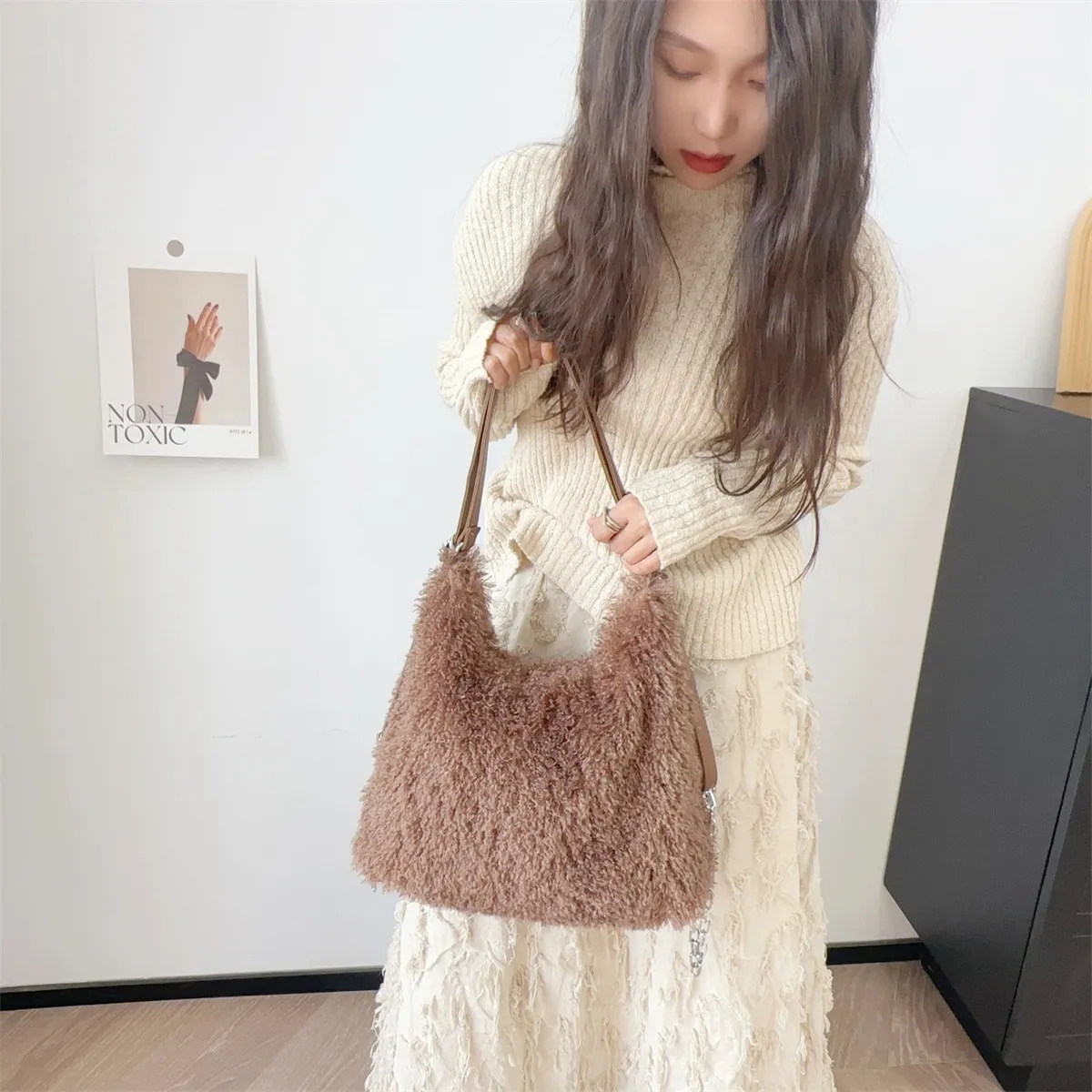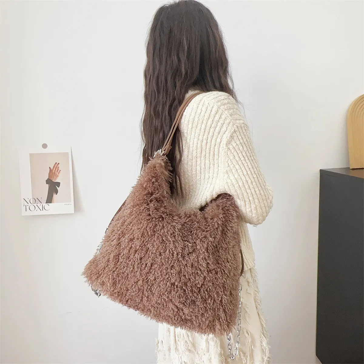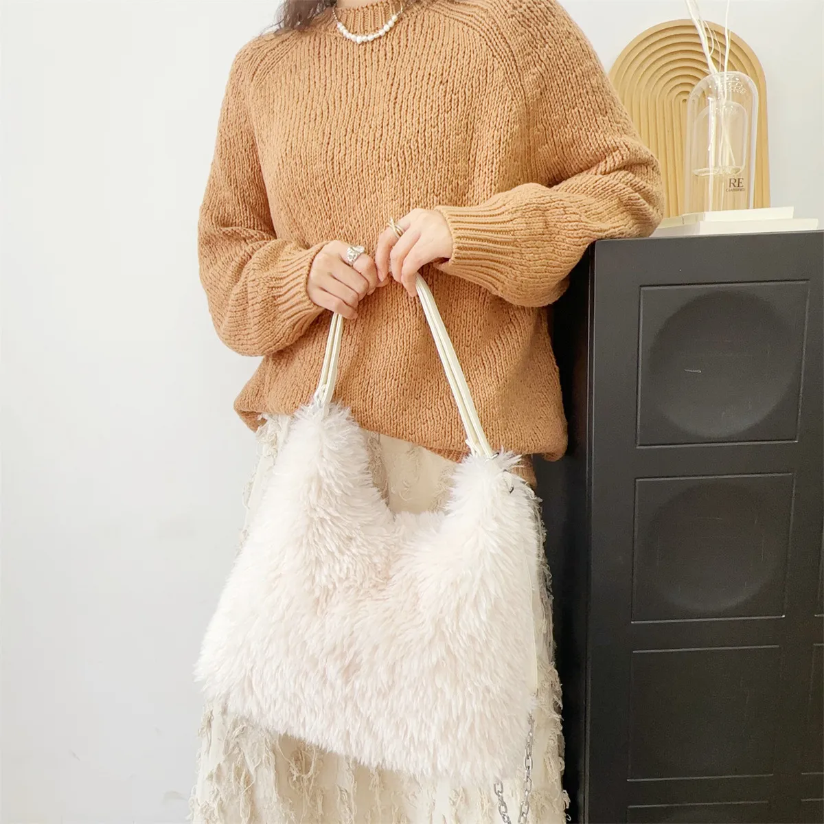 Plush Hand-Carrying and Shoulder Bag: Large-Capacity Winter Accessory