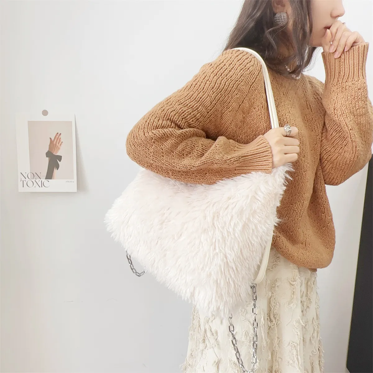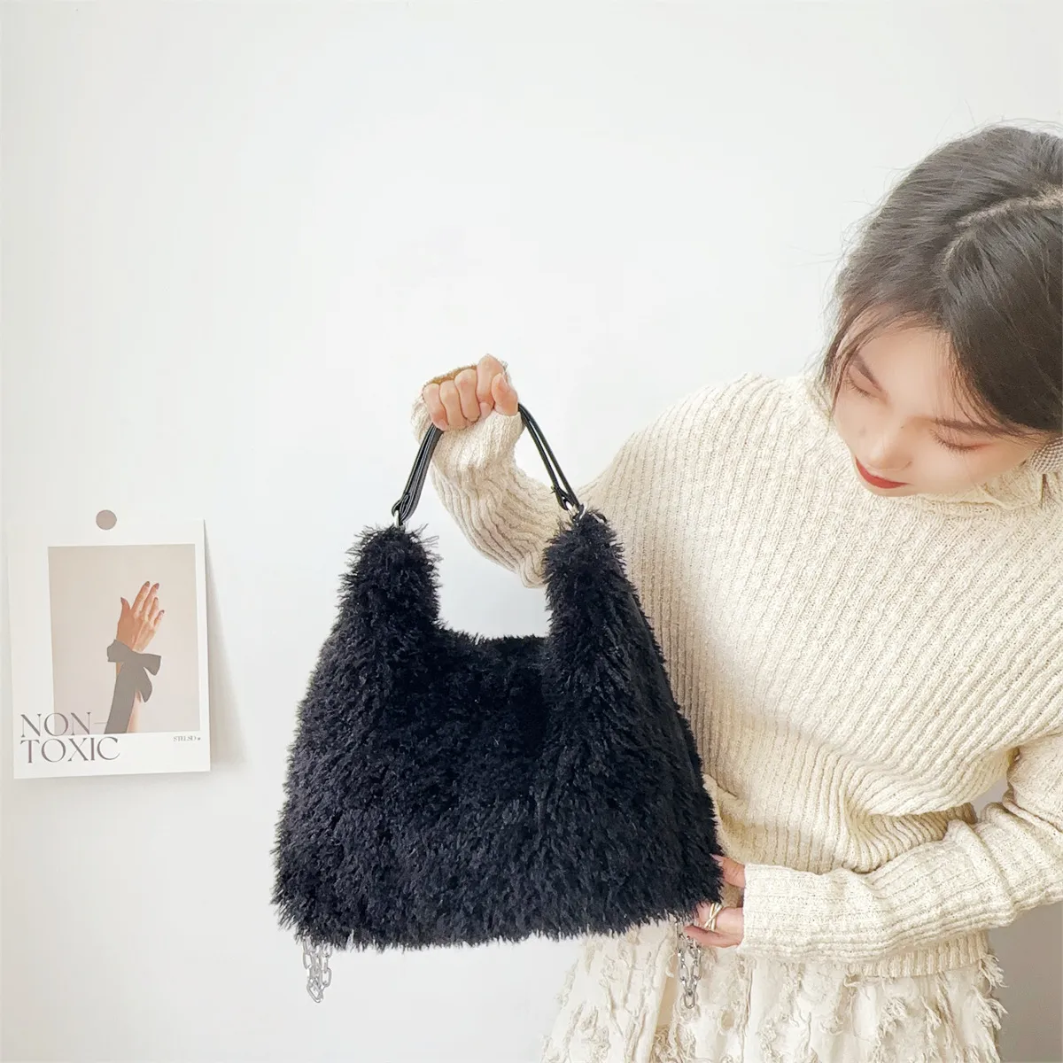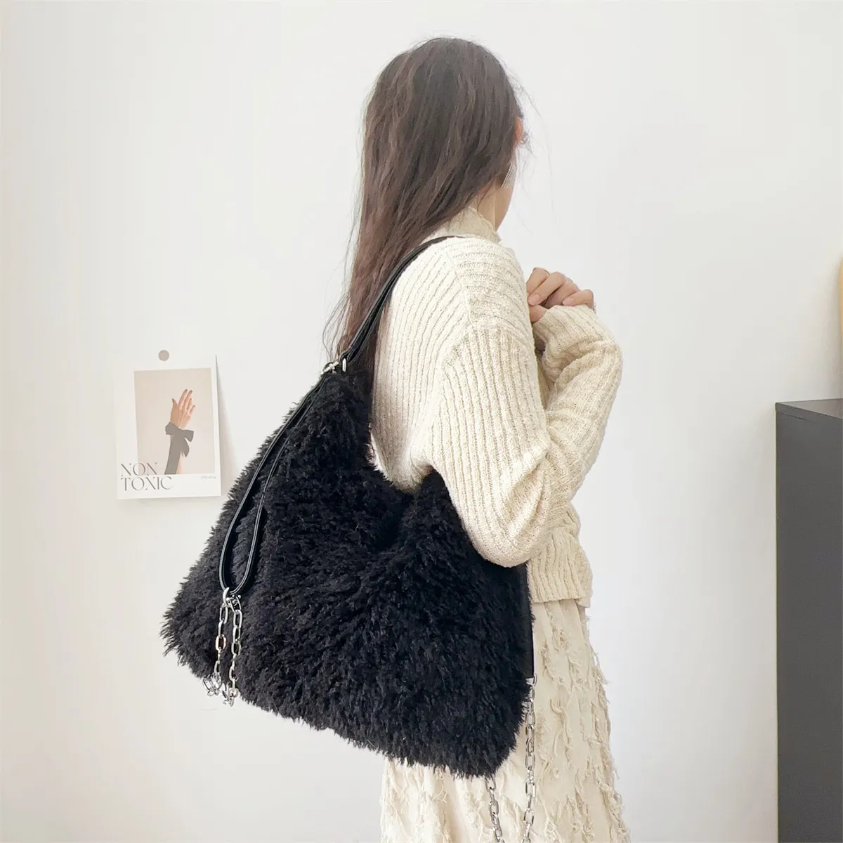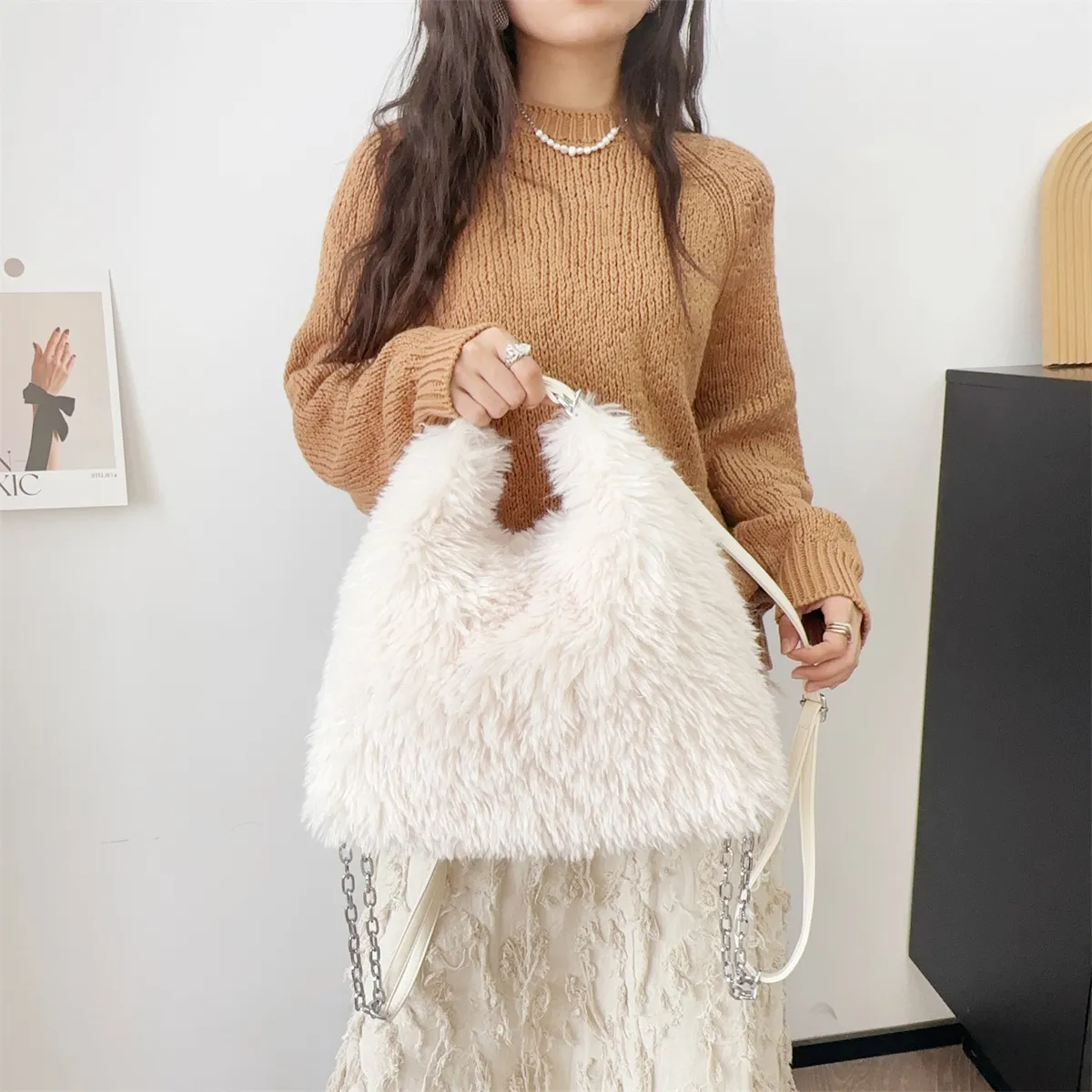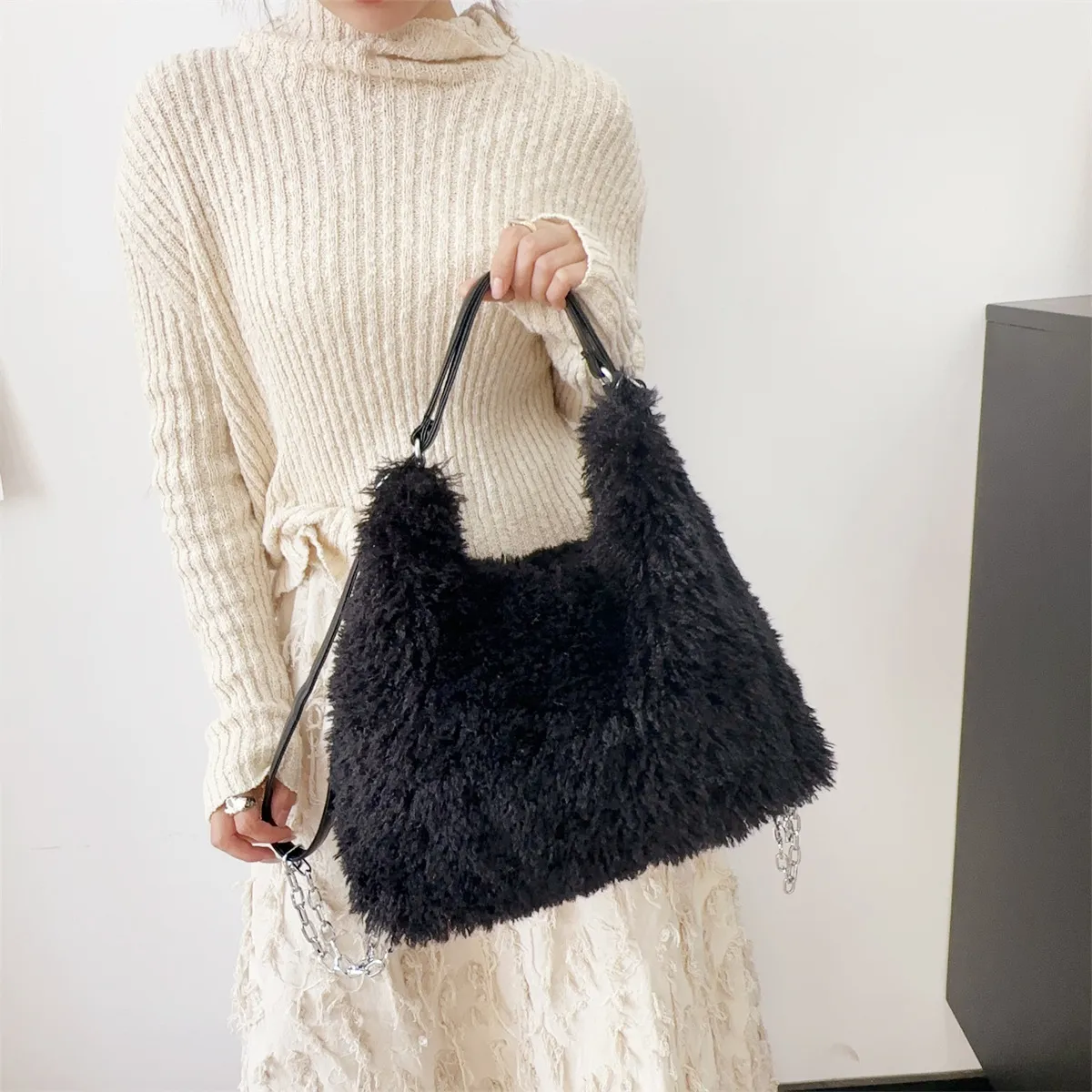 Plush Hand-Carrying and Shoulder Bag: Large-Capacity Winter Accessory