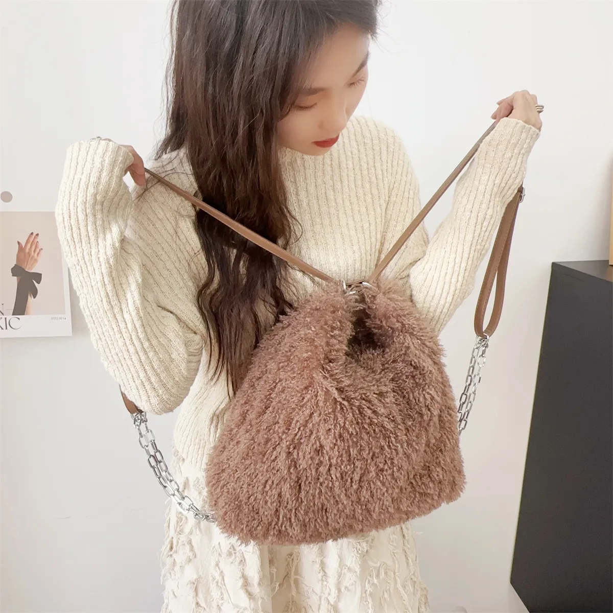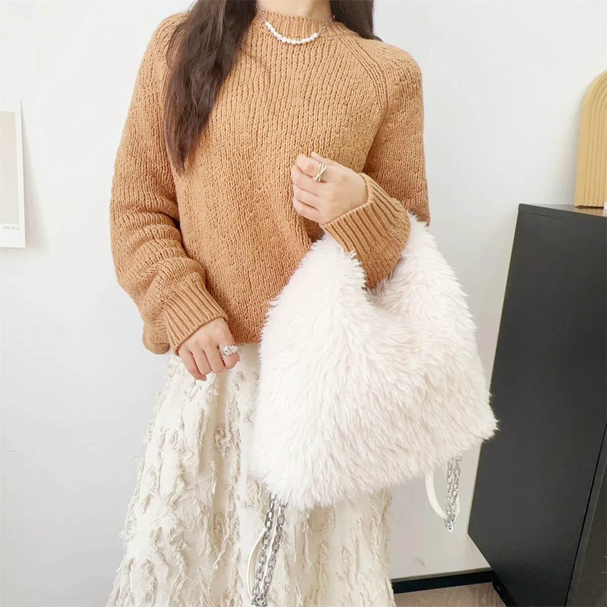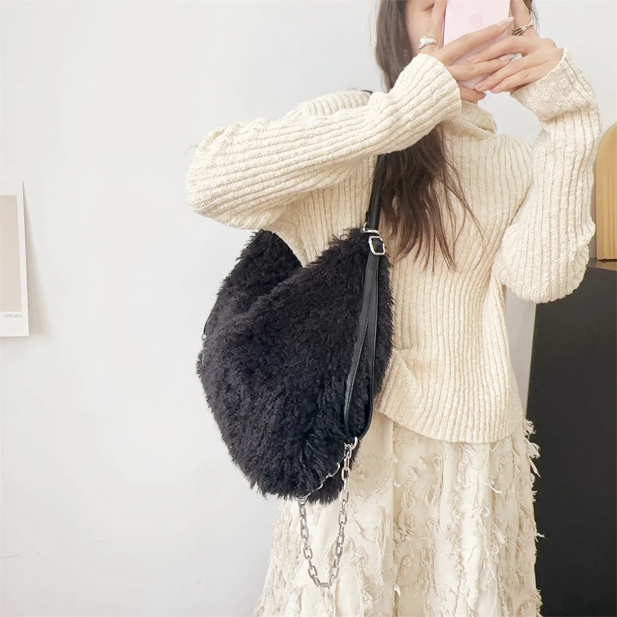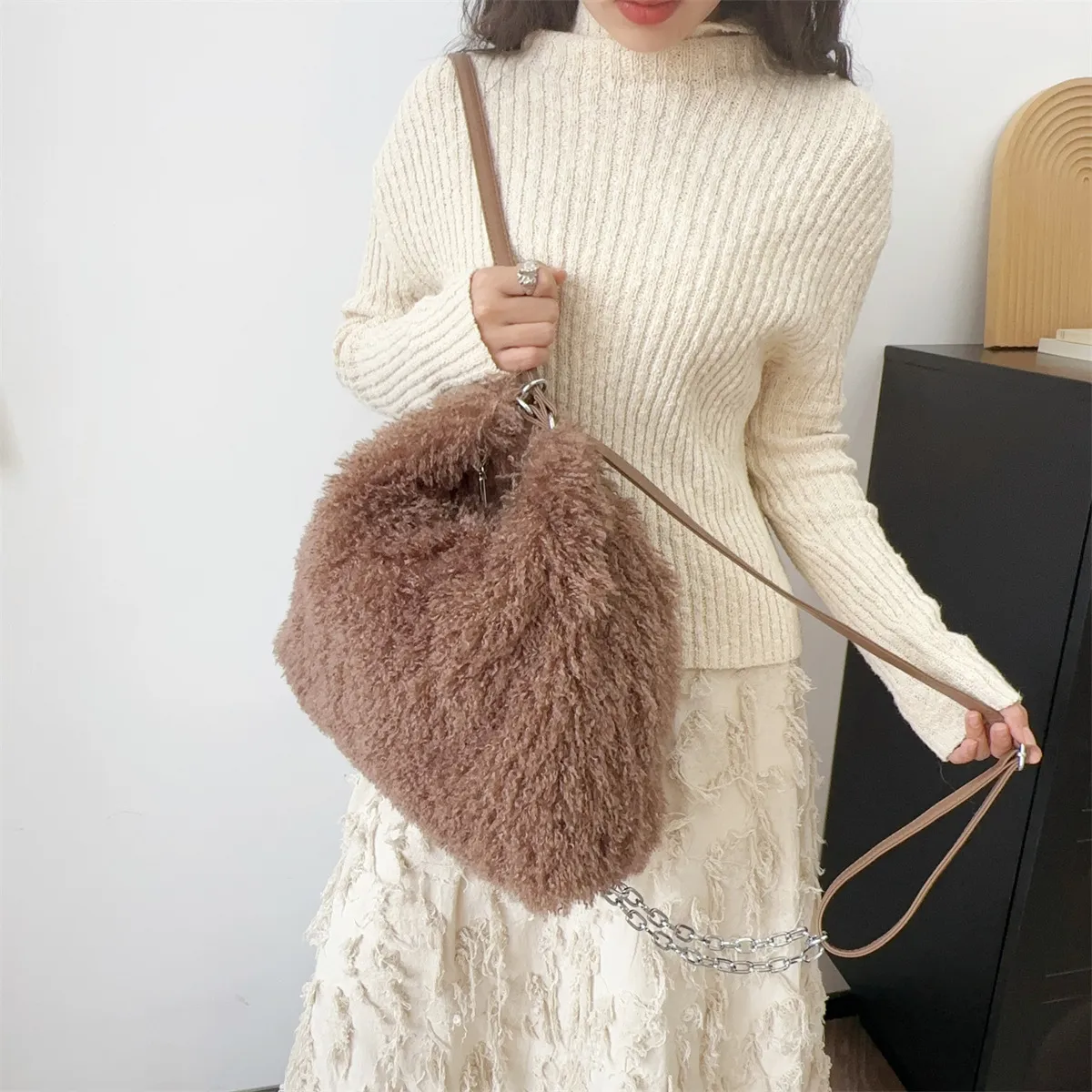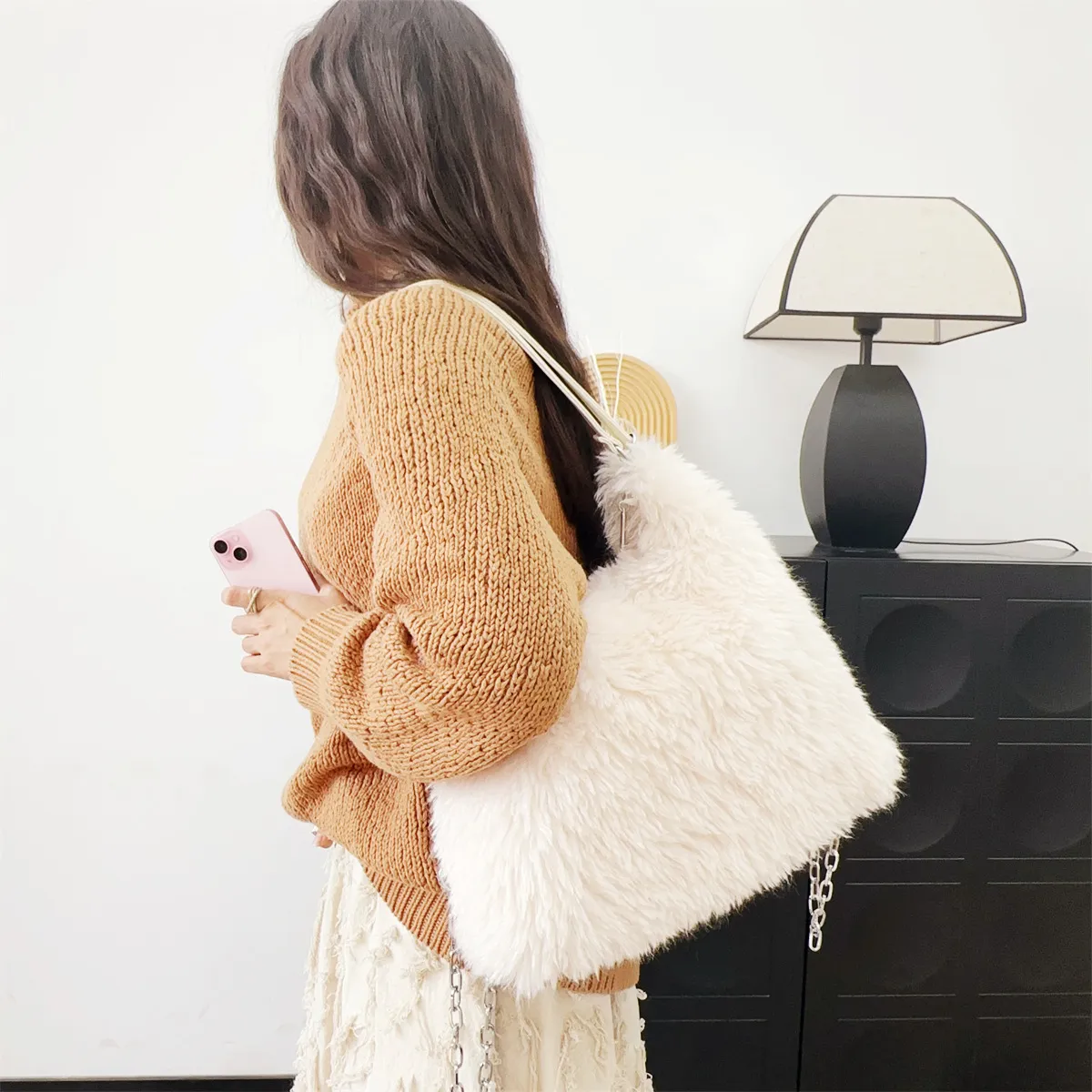 Plush Hand-Carrying and Shoulder Bag: Large-Capacity Winter Accessory