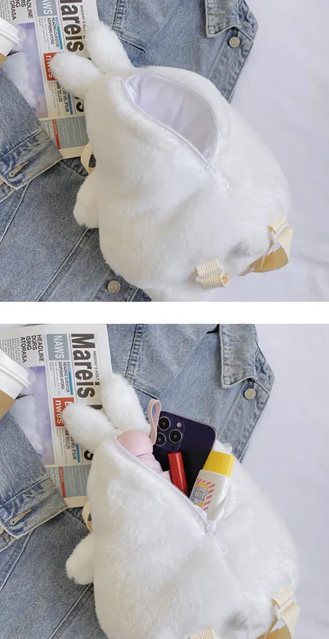 is just what you need! Designed with a playful little duck rabbit character, this backpack combines cute plush elements with the convenience