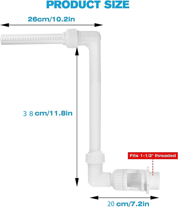 Simple additional adapter design compatible with most 1 ½" Inground Pool return jet and 1 ½" / 1 ¼" Above Ground Pool inlet/outlet fittings.