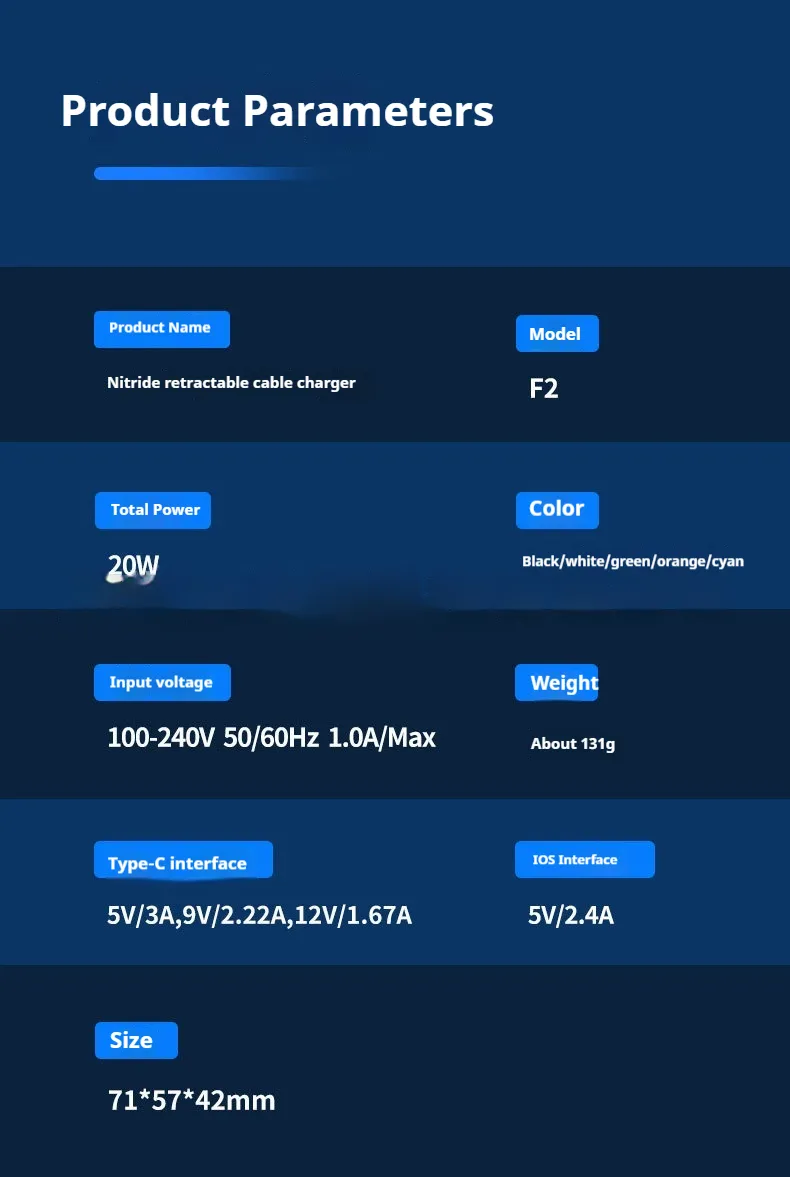 Popular F2 Gallium Nitride Fast Charge Charging Plug Double Flexible Wire