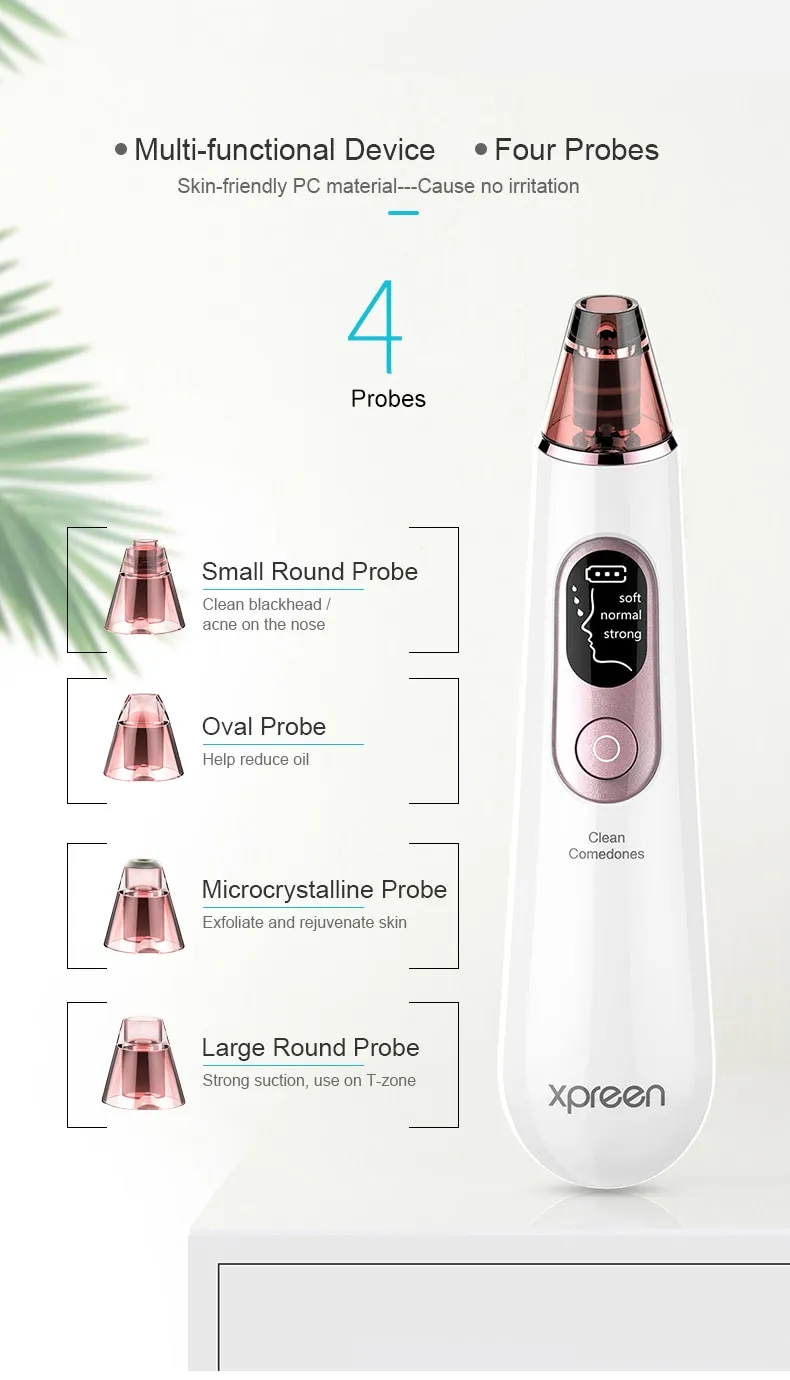 The pore cleaner comes with interchangeable tips for a customized skincare experience, targeting specific skin concerns and areas.