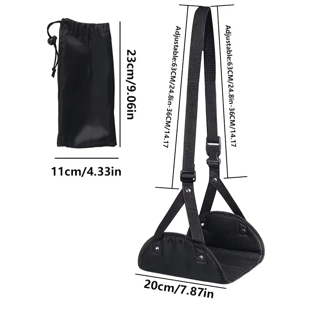 Make long flights more comfortable with this Portable Airplane Footrest, featuring an adjustable strap and lightweight hammock design that provides exceptional support for your legs and feet during travel. Ideal for reducing discomfort and leg fatigue, this footrest is designed to hang from your tray table, creating a comfortable resting spot for your feet. Its compact and lightweight design makes it easy to pack in your carry-on, ensuring you can bring comfort with you wherever you go.