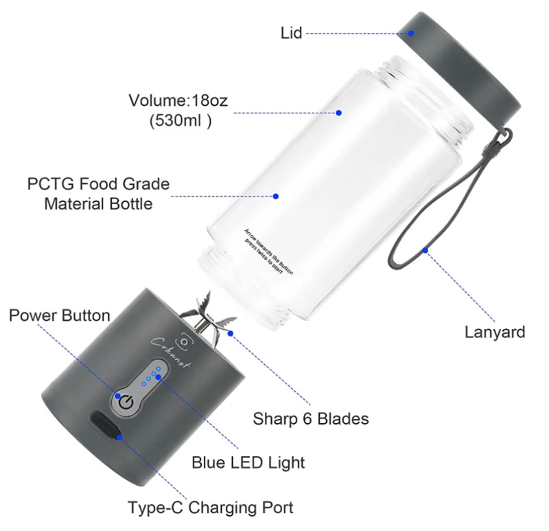 One of the standout features of this portable blender is its hand-operated function. Unlike traditional blenders that rely on electricity, the manual operation gives you complete control over the juicing process. This means you can make your drinks anywhere, even in places without electricity or when you’re off the grid.Benefits: