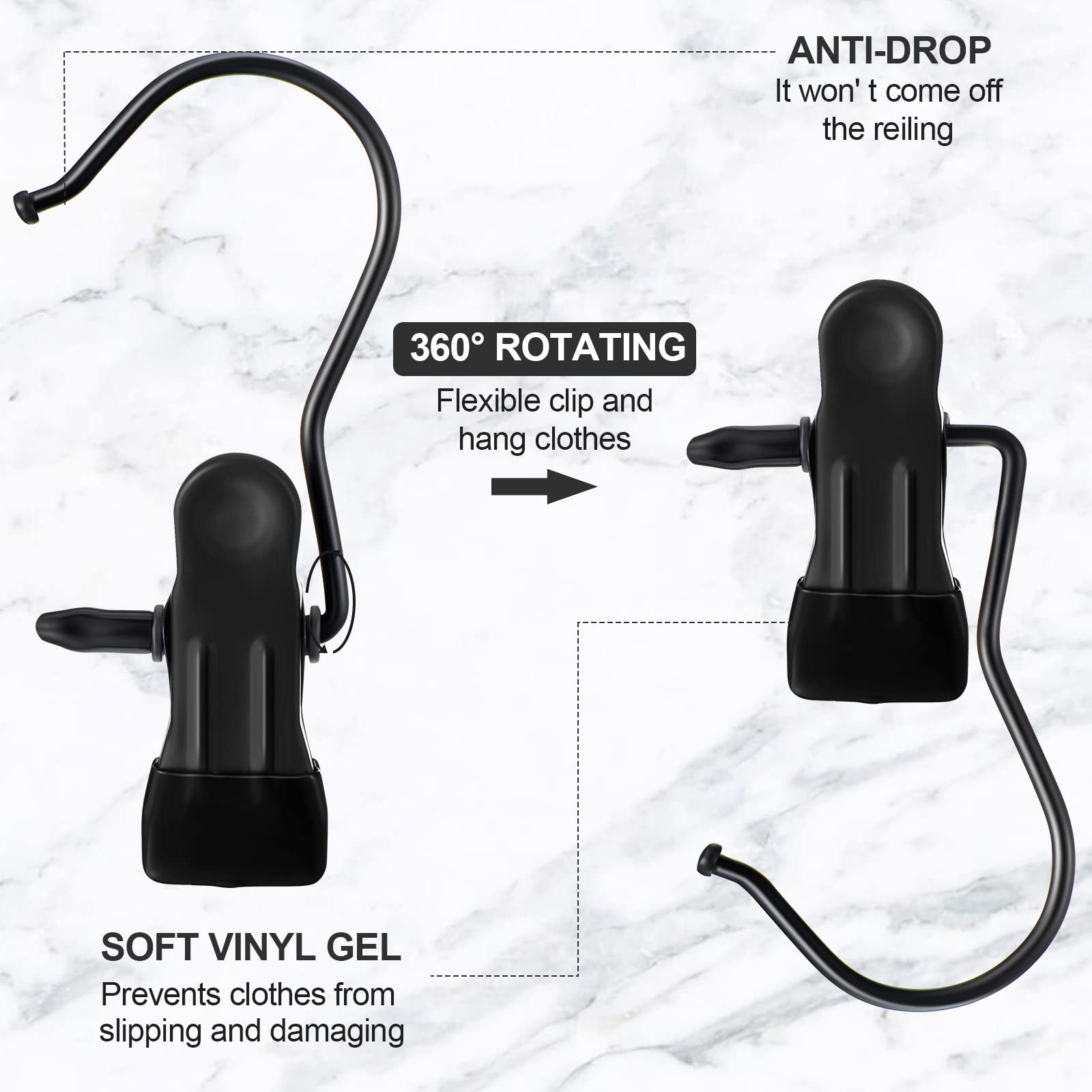 Materlal: Clothes pins made of metal with use of electrophoresis process safe and environmentally strong and durable, the hook can be rotated 360°, and the non-slip clip has a good clamping force, even heavy boots can easily get the job done.