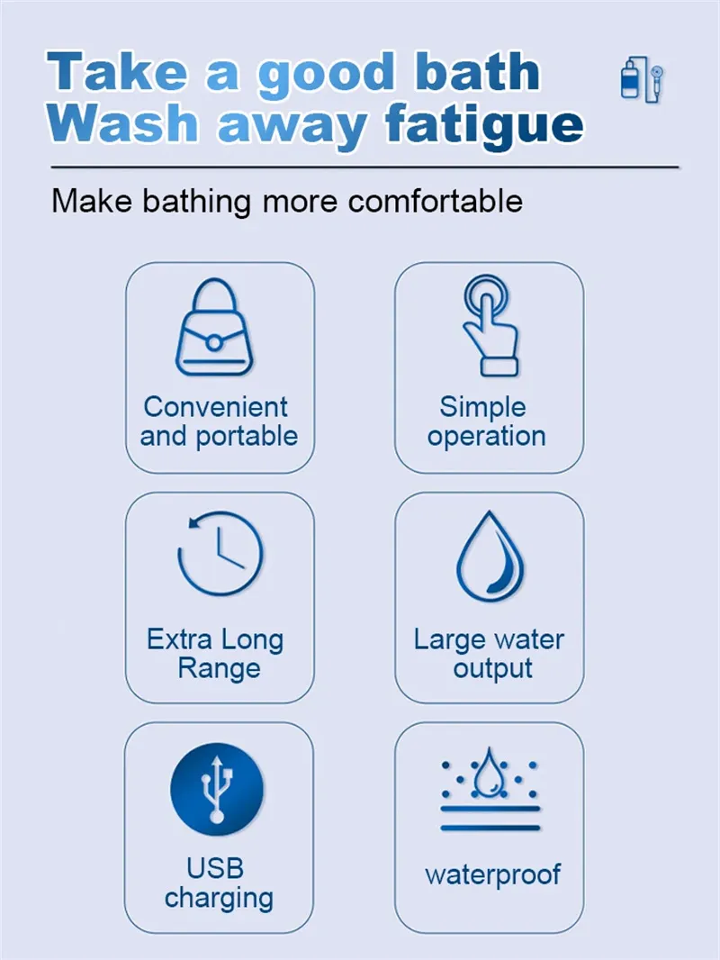 - Electric and Rechargeable: Equipped with a powerful 5000mAh rechargeable battery, this electric shower offers reliable performance without the need for external power sources. Enjoy consistent water flow and pressure with each use.