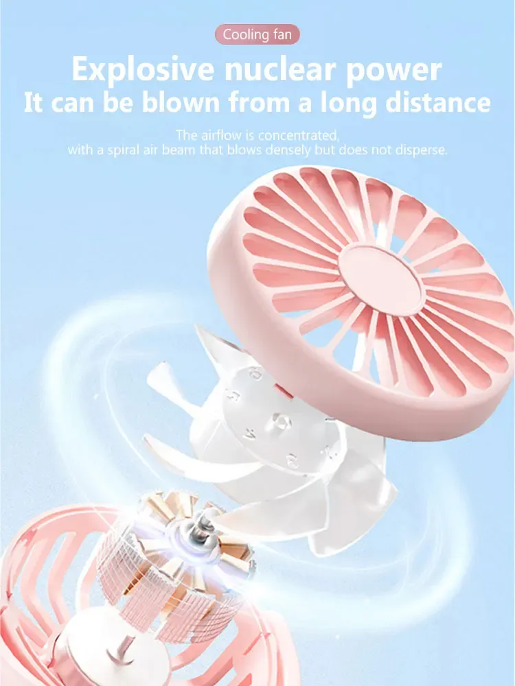 1. This handheld mist fan perfectly combines the two functions of mist and fan. Whether it is a hot summer day or a dry environment, it can bring you cool breeze and moist water mist, allowing you to enjoy an all-round comfortable experience.Â