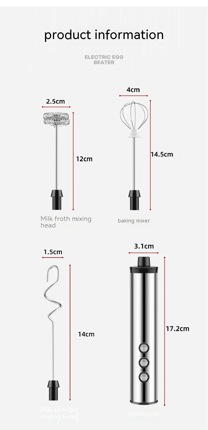 The three whisk heads provide flexibility for different tasks: the balloon whisk for incorporating air into batters and egg whites, the flat whisk for heavier mixtures like pancake batter, and the spiral whisk for frothing milk and mixing light ingredients. The high-speed motor ensures fast and efficient mixing, saving you time while delivering consistent results. Whether you're preparing fluffy scrambled eggs, smooth cake batters, or perfectly whipped cream, the Portable Household Charging Three-head Handheld Egg Beater guarantees a seamless cooking experience.