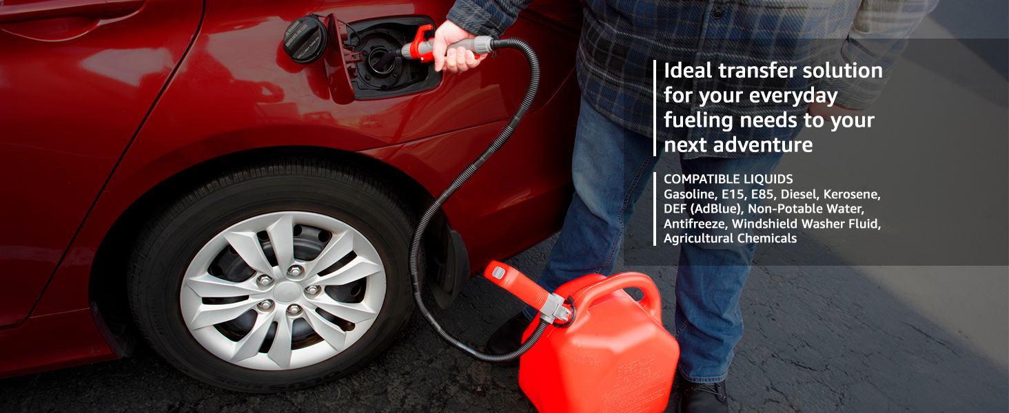- STOP LIFTING HEAVY CANS | Flexible System Finally Gives Your Back a Break | Operate the Pump with One Hand or 100% Hands-Free—No Heavy Lifting! | Extra Long Transfer & Suction Tube Easily Reaches Inside High Cans, Big Water Jugs & Other Large Tanks, While the Oversized Transfer Hose Provides Further Length & Reach