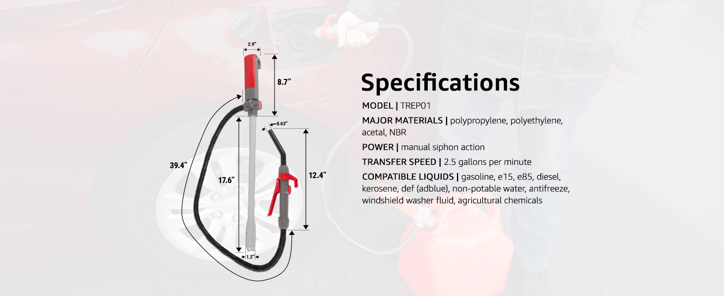 - Extra Long Transfer Tube: With our extended 3 FT hose, you can effortlessly access high cans, large water jugs, and other high tanks. This extra-long transfer hose offers increased length and reach to enhance your convenience.