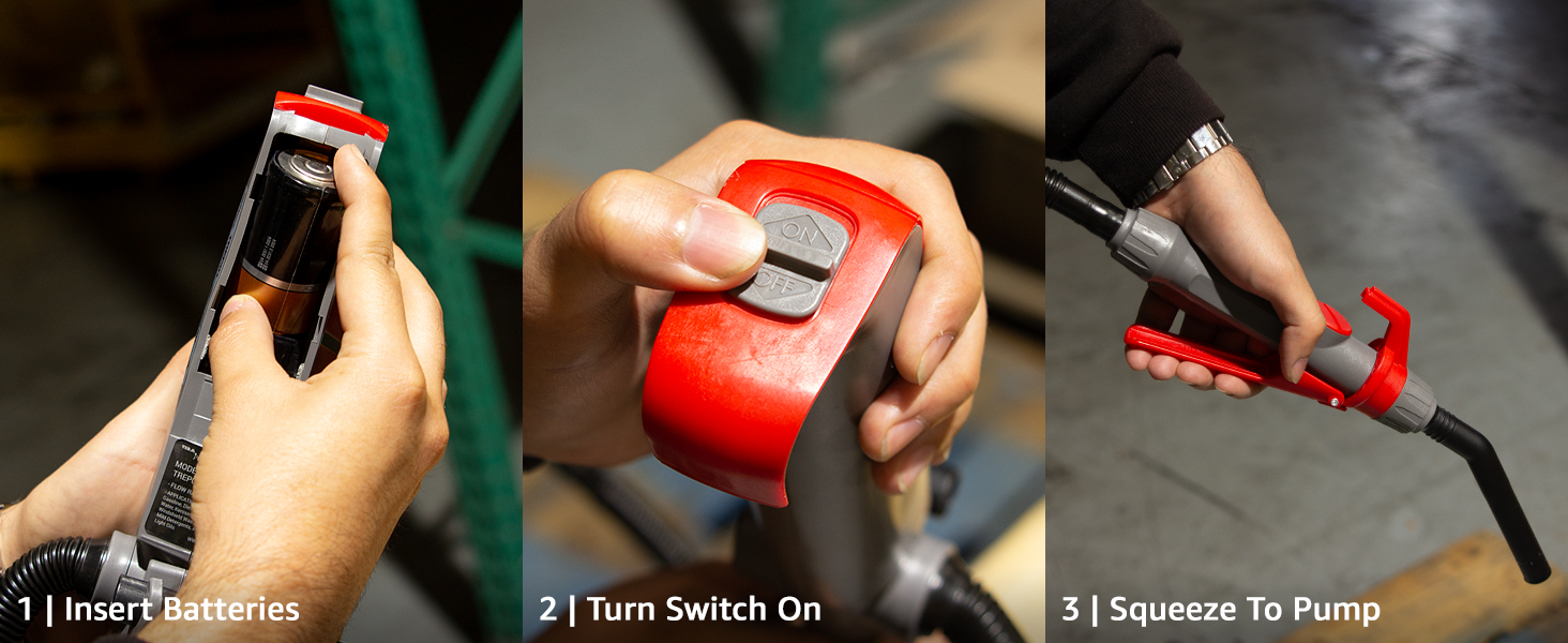 - POWERFUL D BATTERY OPERATED | Insert two D 1.5V batteries (not included) into the compartment and enjoy hours of dependable liquid transfer—anywhere in the world! Great for filling up off-road vehicles, lawn equipment and more