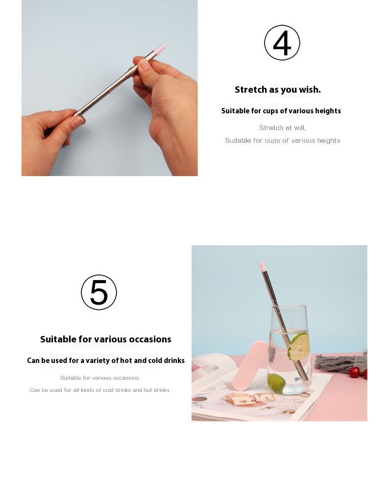 Enjoy your drinks on-the-go with our Portable Retractable Stainless Steel Folding Straw. This two-in-one removable and reusable straw is perfect for eco-friendly, convenient sipping anywhere.