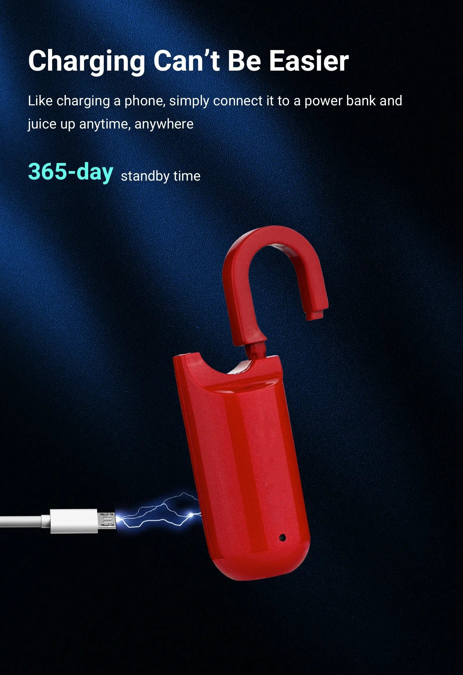 USB Rechargeable: Equipped with a long-lasting battery, this padlock can be easily recharged via USB. A single charge