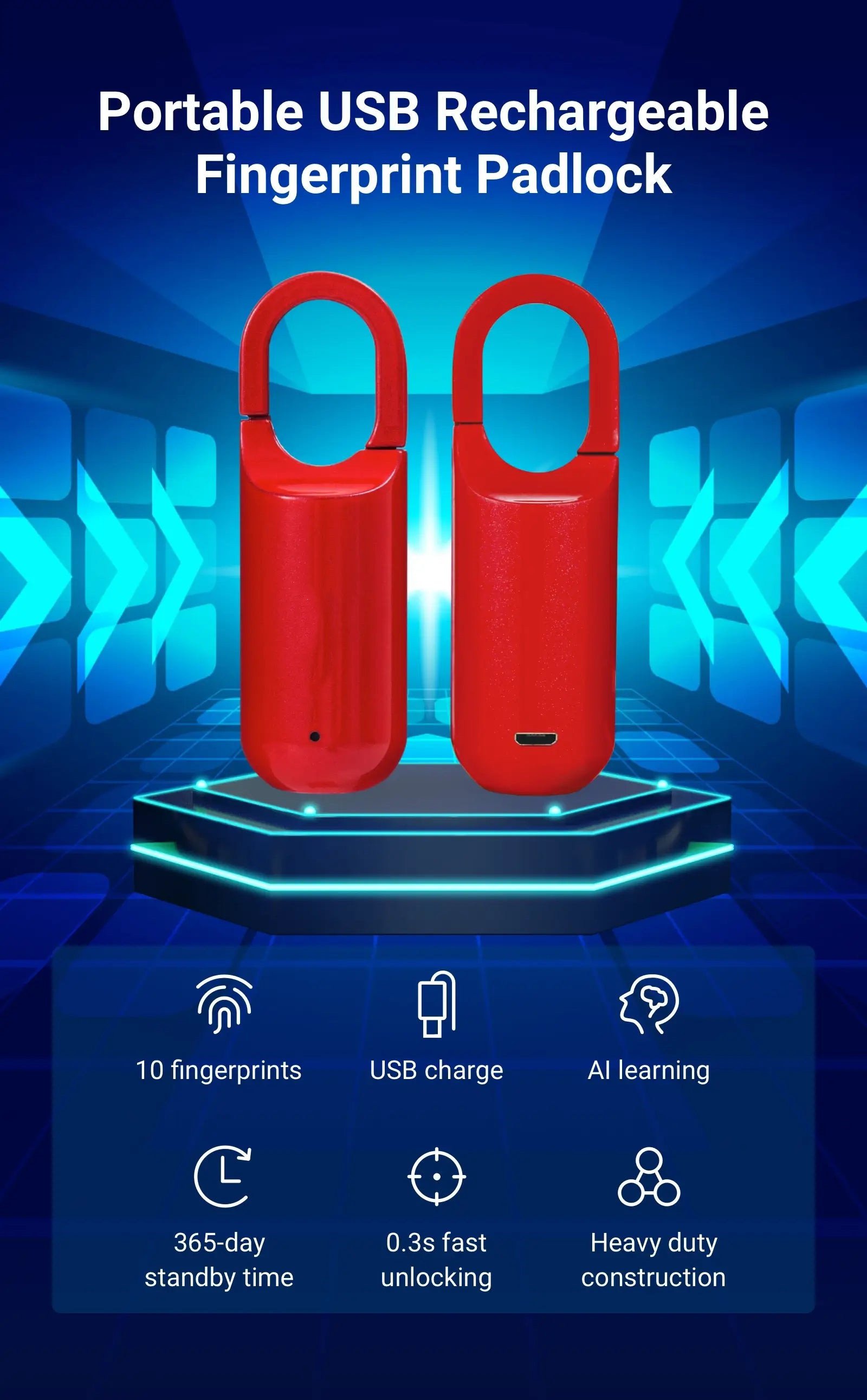 Why Choose the Portable Smart USB Rechargeable Fingerprint Padlock?This fingerprint padlock offers the ultimate combination