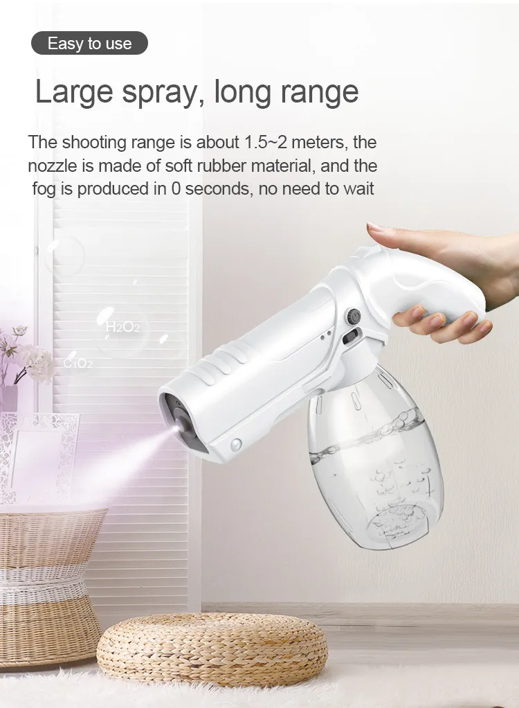 - Nano Atomization Technology: Produces a fine mist for even and thorough sanitizing.