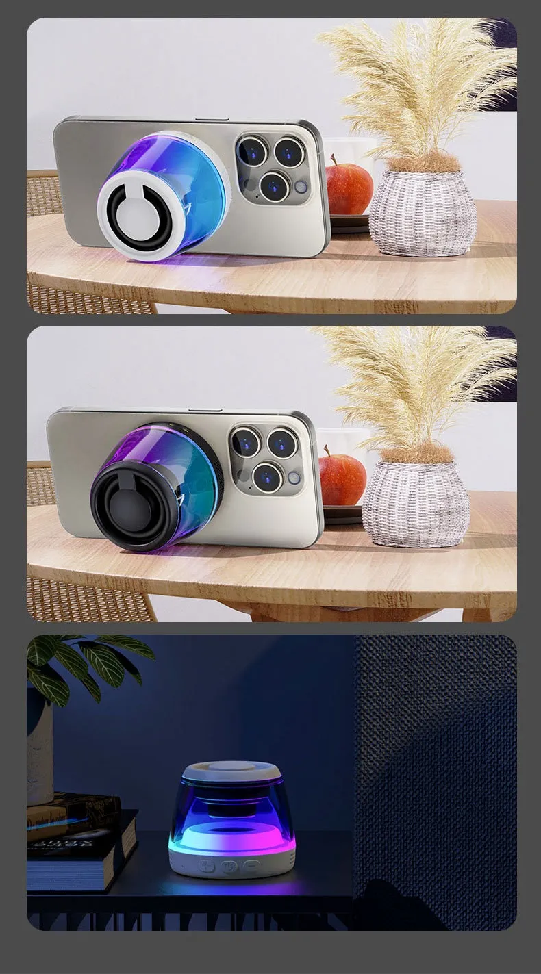 Transform your space with the Portable Wireless Sound Ambience Light Bluetooth Magnetic Mini Speaker, a compact yet powerful audio device that combines immersive sound quality with soothing ambient lighting. This magnetic mini speaker is designed for music lovers, home décor enthusiasts, and outdoor adventurers, offering crystal-clear sound, vibrant LED lighting, and magnetic versatility for an all-in-one experience.