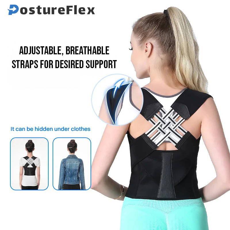 PostureFlex is designed for comfort and adjustability, ensuring that you can wear it throughout the day without discomfort.