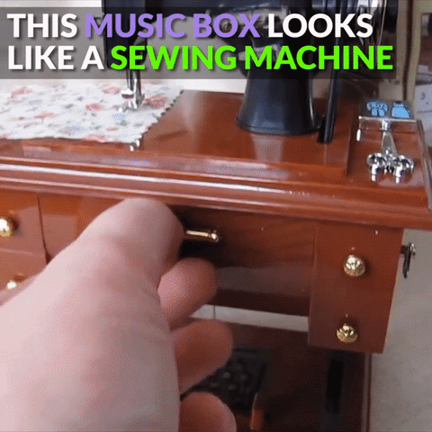 - Creative sewing machine design music box, the shape of a vintage treadle sewing machine
