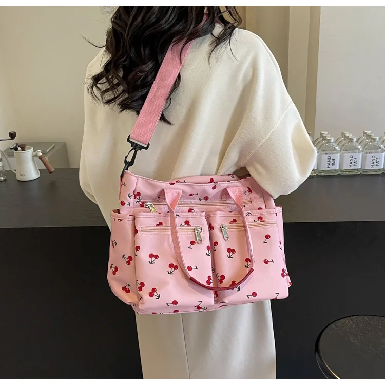 This bag is more than just an accessory—it's a fun, expressive way to enhance your personal style. Whether you're running errands, attending a casual gathering, or simply enjoying a sunny day, this bag combines fashion with functionality. Its charming cherry print and practical features make it an ideal choice for women who want a bag that's as cute as it is useful.