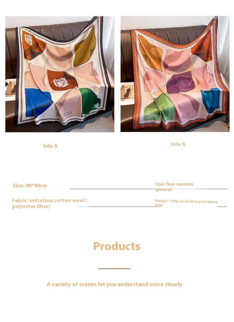 Printing Color Contrast Double-sided Different Color Dual-use Large Kerchief
