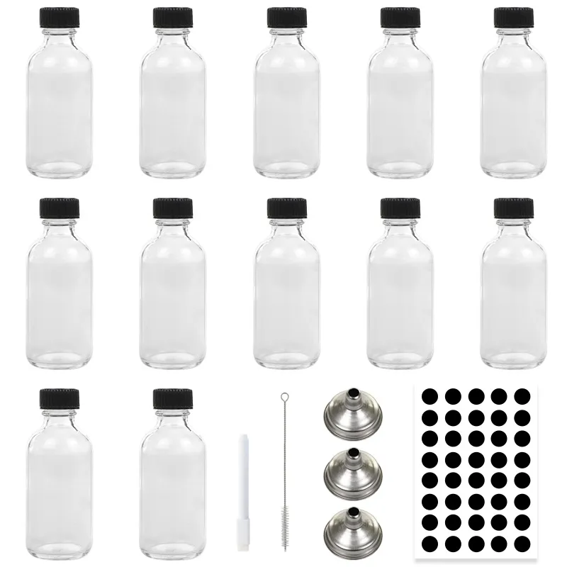 Specifications: 12 (12 glass bottles, 12 plastic cover funnels, 3 brushes, 1 brush, Blackboard paste 1 whiteboard marker 1)