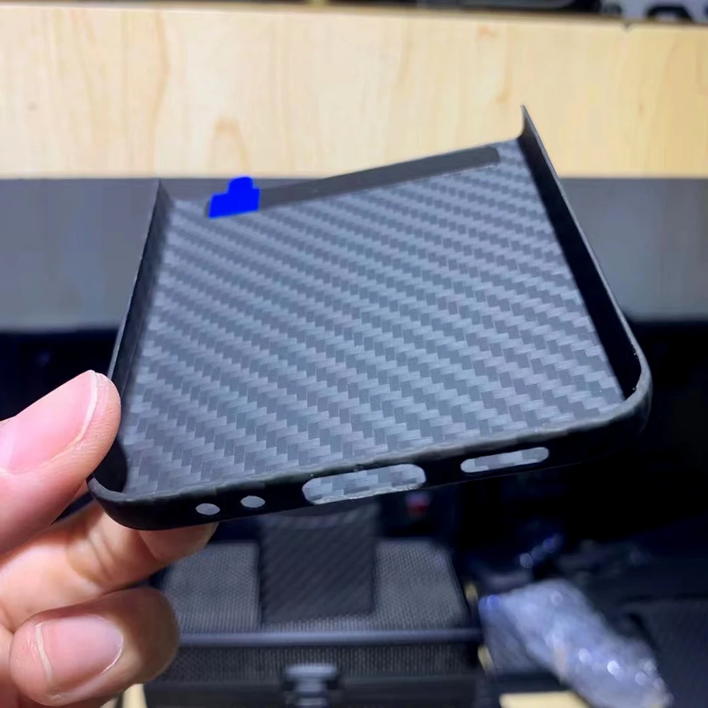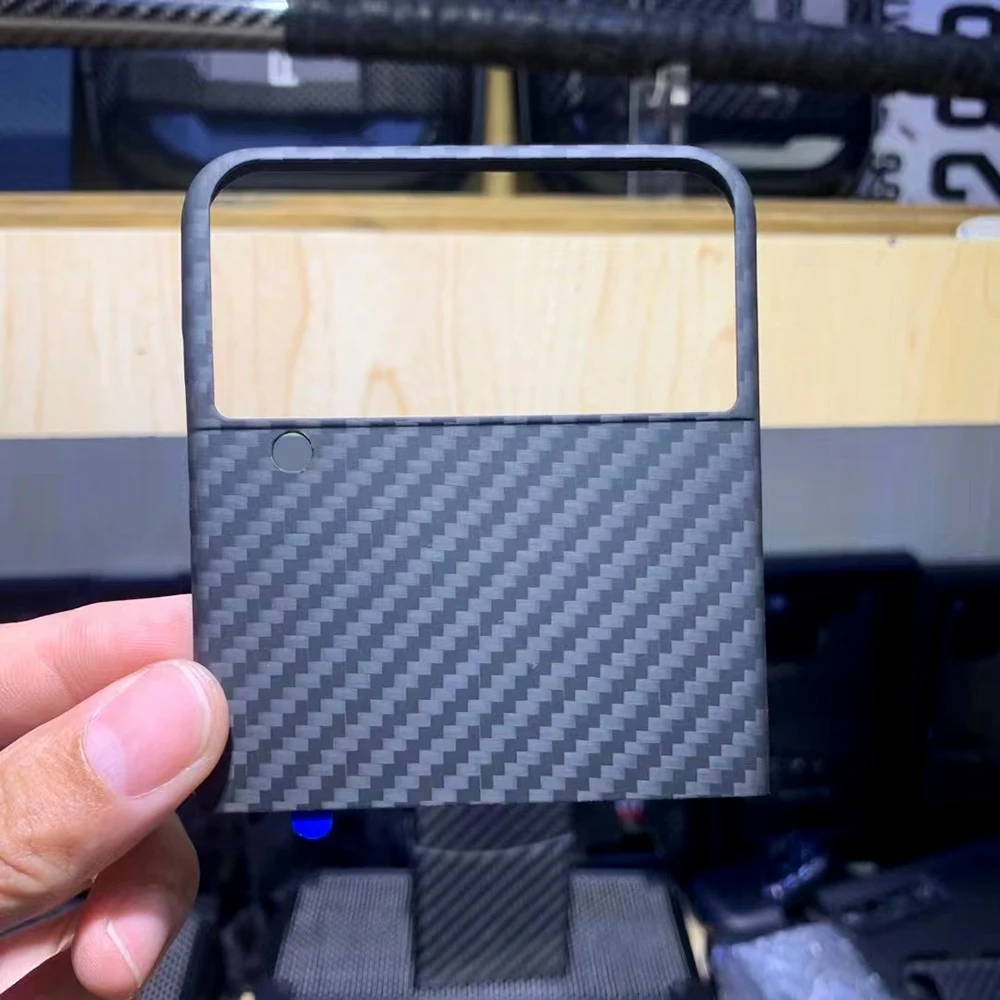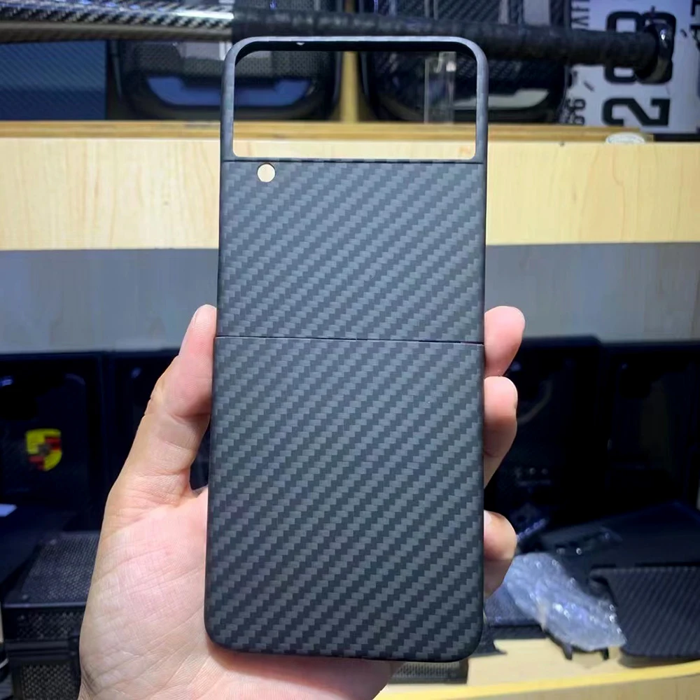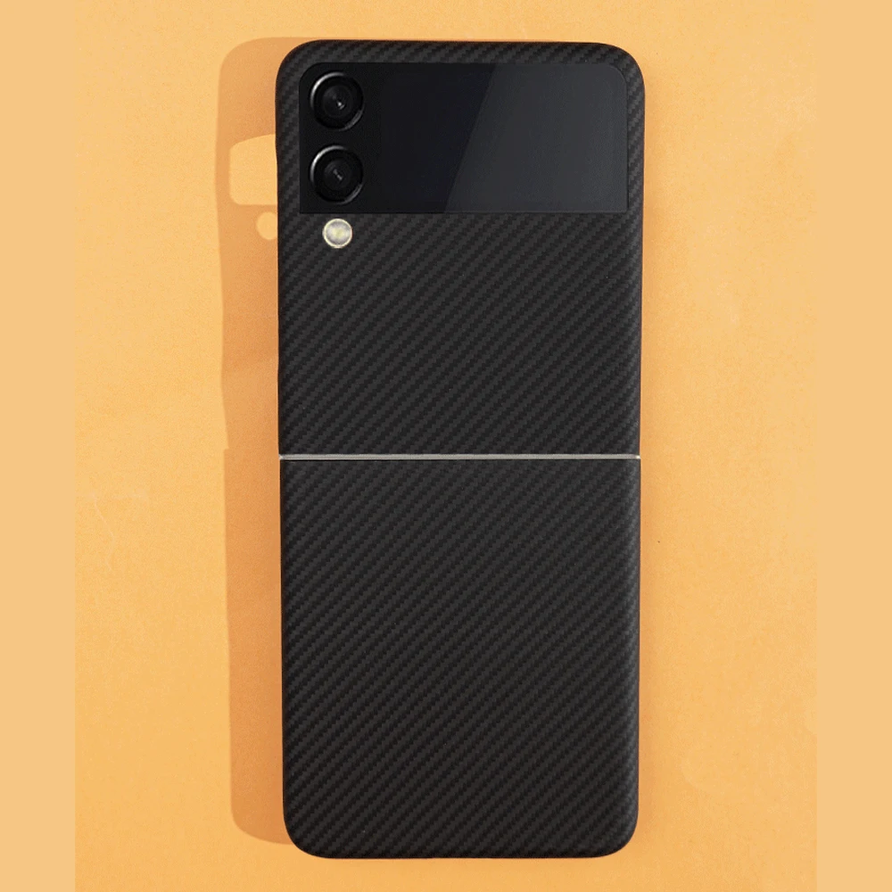 The QADIR pure carbon fiber case is designed specifically for the Samsung Galaxy Z Flip 3. Made from ultra-thin aramid fiber, this business phone cover offers premium protection while maintaining a sleek and lightweight profile. It ensures robust defense against impacts and scratches without adding bulk to your device.
