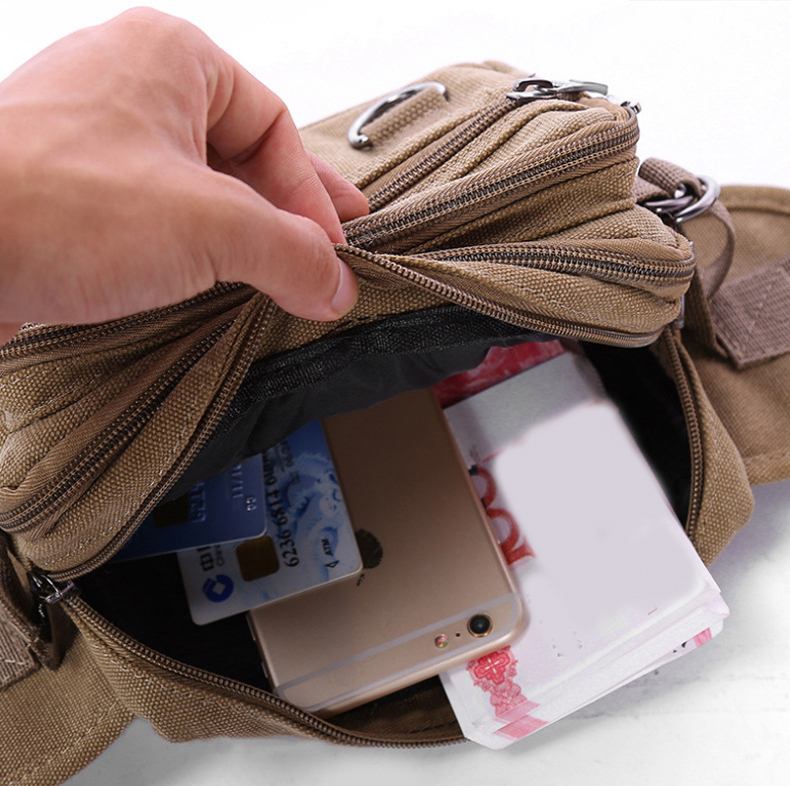 Discover the ultimate convenience with the QuadraZip Hip Pack, a versatile canvas fanny pack designed for the active individual. Featuring four zipper pockets, an adjustable strap, and durable construction, it's perfect for outdoor adventures, workouts, traveling, running, hiking, and cycling. Stay organized and hands-free while keeping your essentials secure and easily accessible. Ideal for both men and women seeking functionality and style on the go.