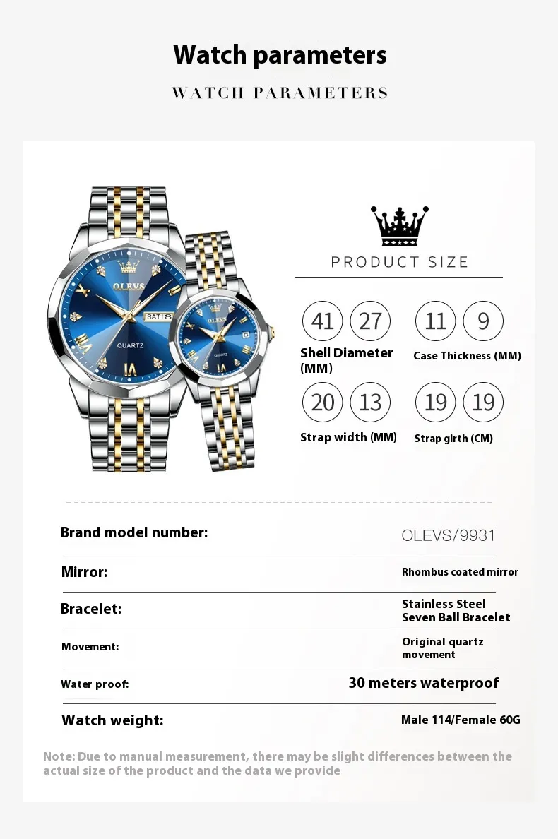 Enjoy precise timekeeping with reliable quartz movement, ensuring your watches stay accurate for years to come.