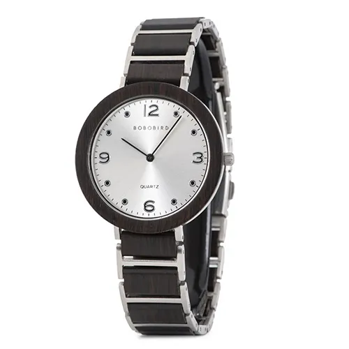 The blend of natural wood and modern stainless steel makes this watch a standout accessory that complements any wardrobe.