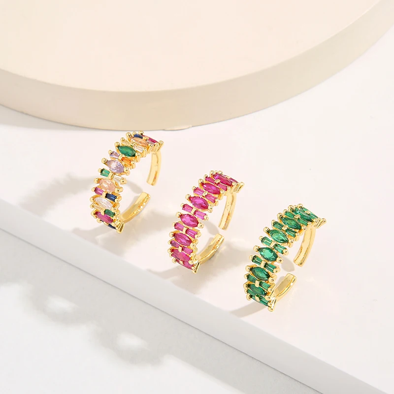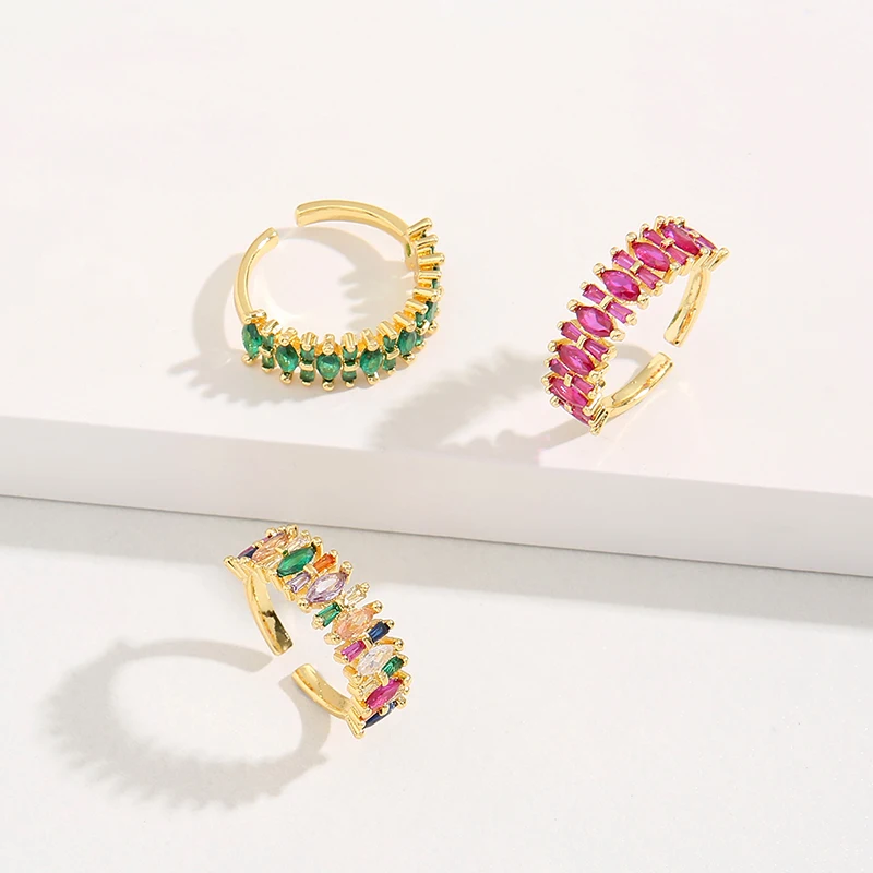 Each gemstone is expertly set in a high-quality gold-plated band, creating a striking contrast that highlights the vivid hues of the stones. The adjustable design ensures a comfortable and secure fit for any finger size, making it a versatile accessory that can be worn on any occasion.