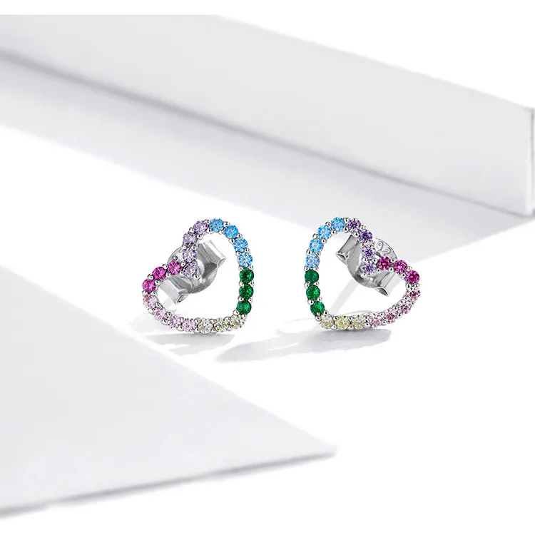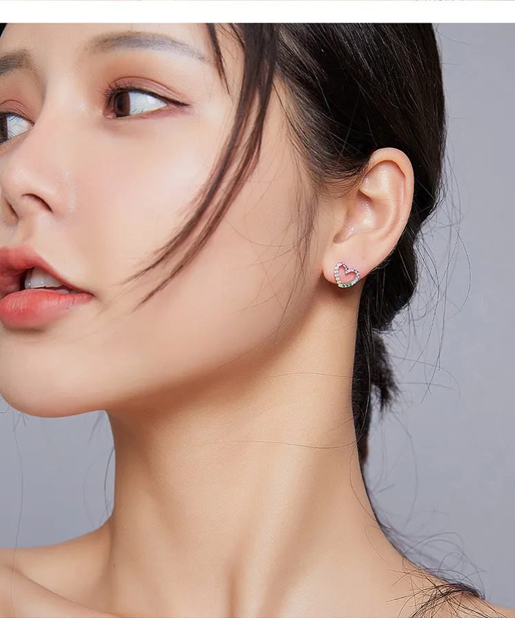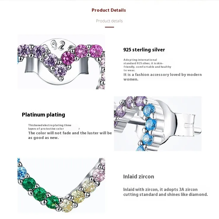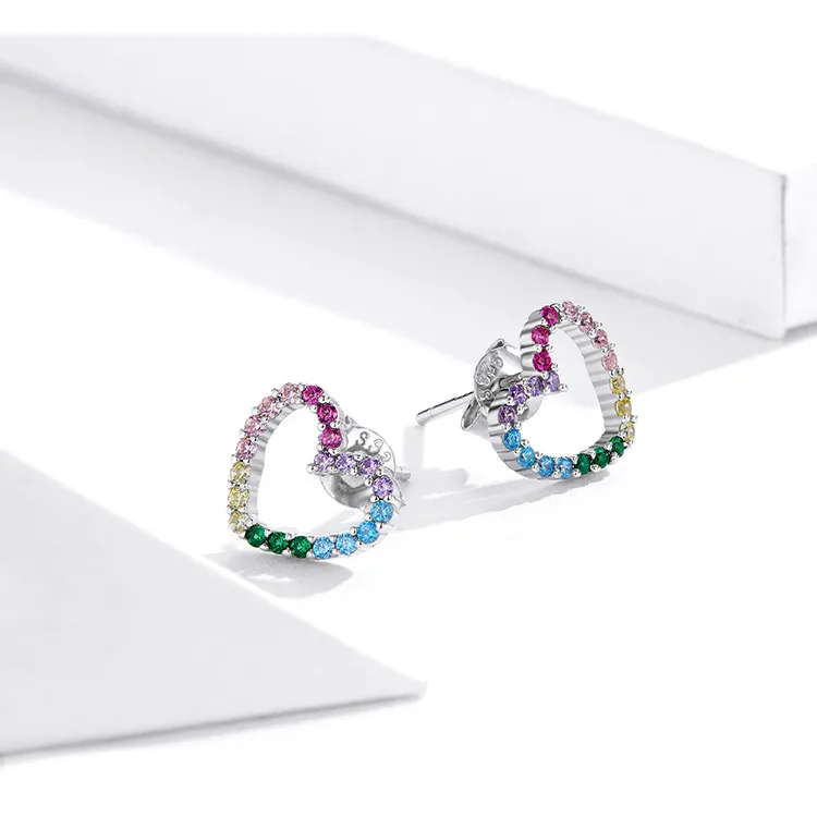 Rainbow Earrings Sterling Silver S925 Heart-shaped Color