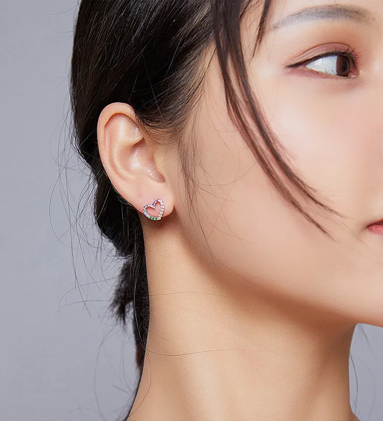 Rainbow Earrings Sterling Silver S925 Heart-shaped Color