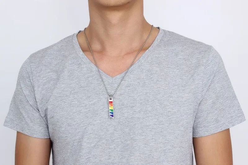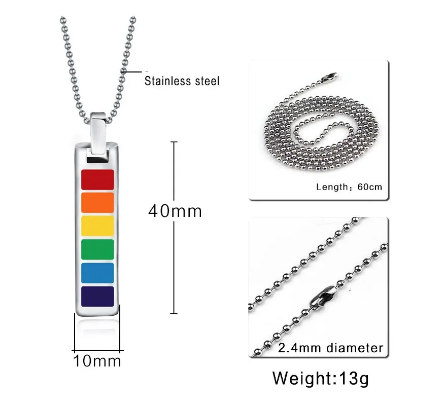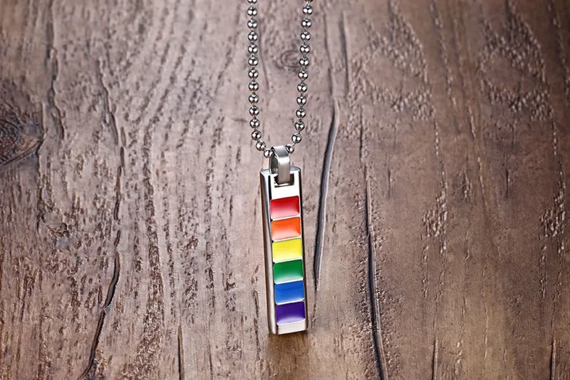 Rainbow rectangular pendant necklace
