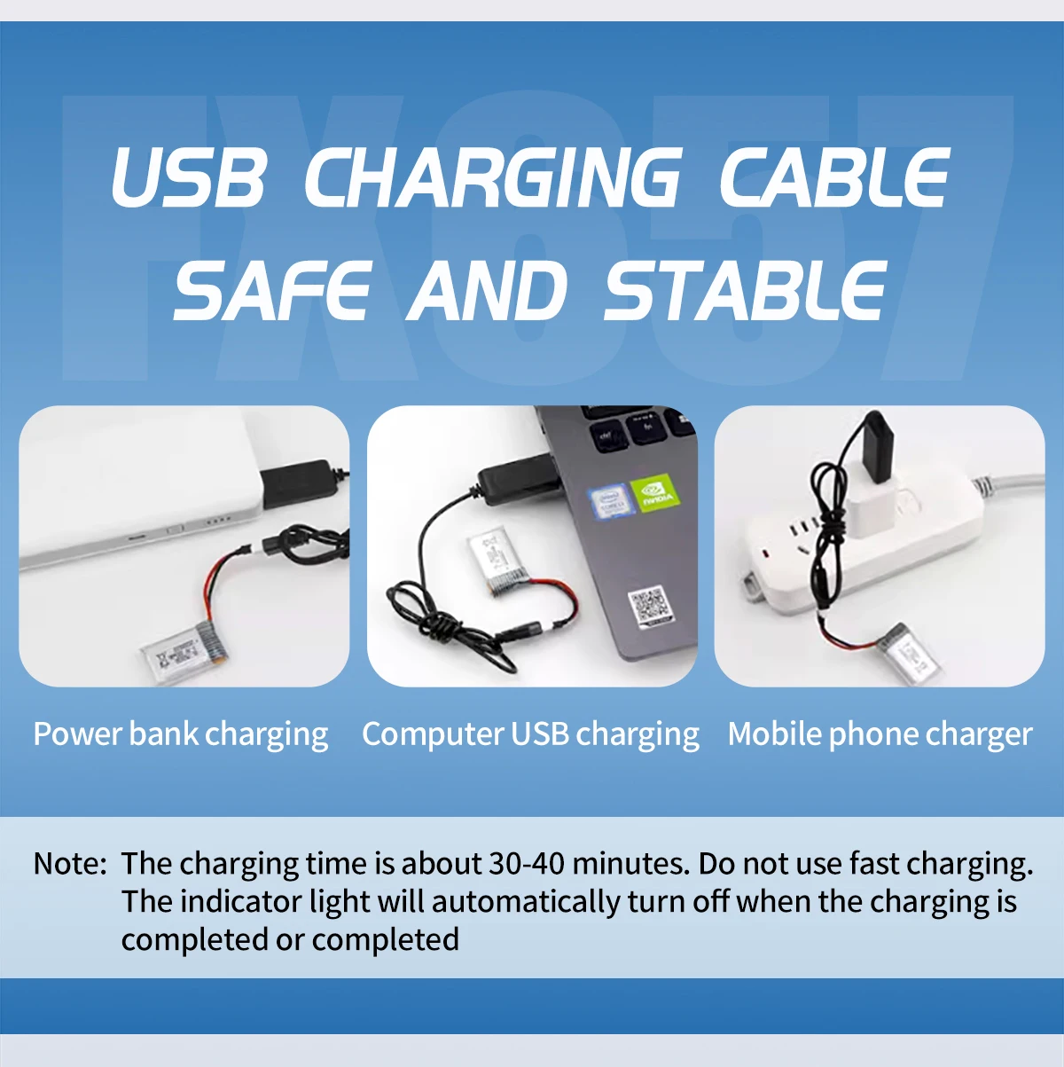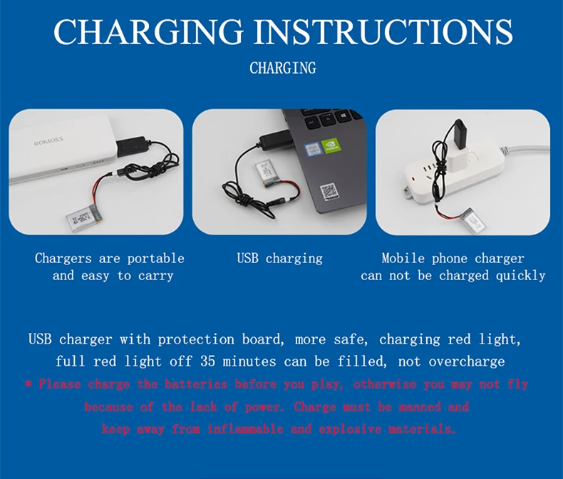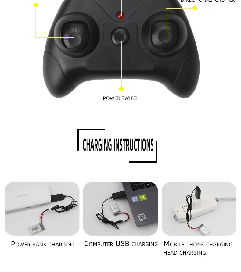 lipoRemote Control Mode: 2.4G 2 ChannelsMotor: Motor 0614*2Charging Time: About 30-40minCharging method: UBS charging cable