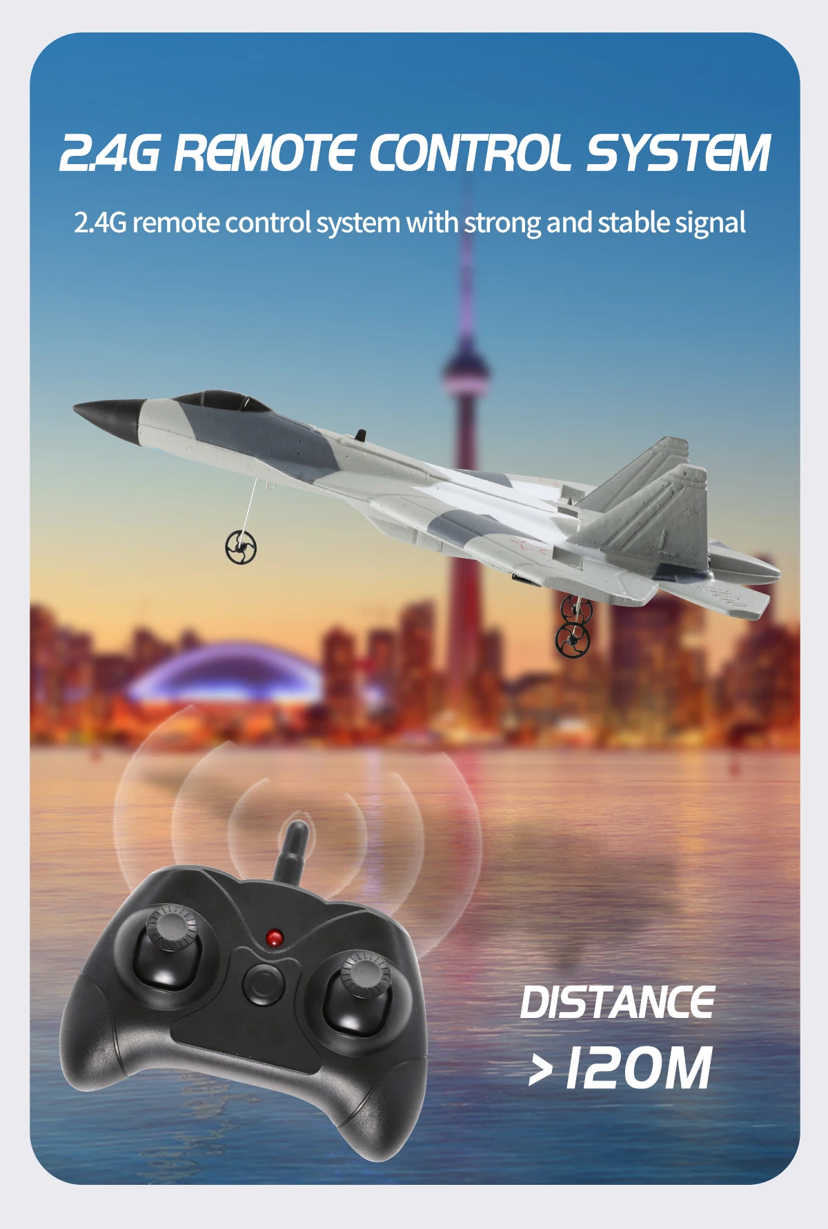 This RC glider uses advanced 2.4GHz radio control technology, which ensures interference-free control even when flying in a crowded environment. The 2.4G frequency offers precise, reliable control with minimal delay. Unlike traditional RC planes that operate on lower frequencies, the 2.4GHz system allows multiple planes to fly at the same time without signal interference. This feature makes the SU-35 RC fighter plane perfect for group play, allowing kids and friends to race or perform stunts together without any issues.