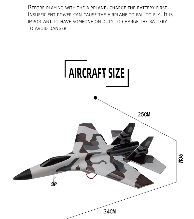 The RC Foam Aircraft SU-35 Plane is a high-performance, radio-controlled fighter plane glider designed to provide hours of fun and excitement for aviation enthusiasts of all ages. This 2.4G radio control airplane is built for stability, precision, and ease of use, making it perfect for both beginners and seasoned RC pilots. The SU-35 fighter plane model, inspired by the real-world SU-35 jet, delivers realistic flying experience with its sleek design and smooth aerodynamic features. Whether you're looking for a fun toy for a child or a cool new addition to your RC collection, this glider airplane is guaranteed to impress.