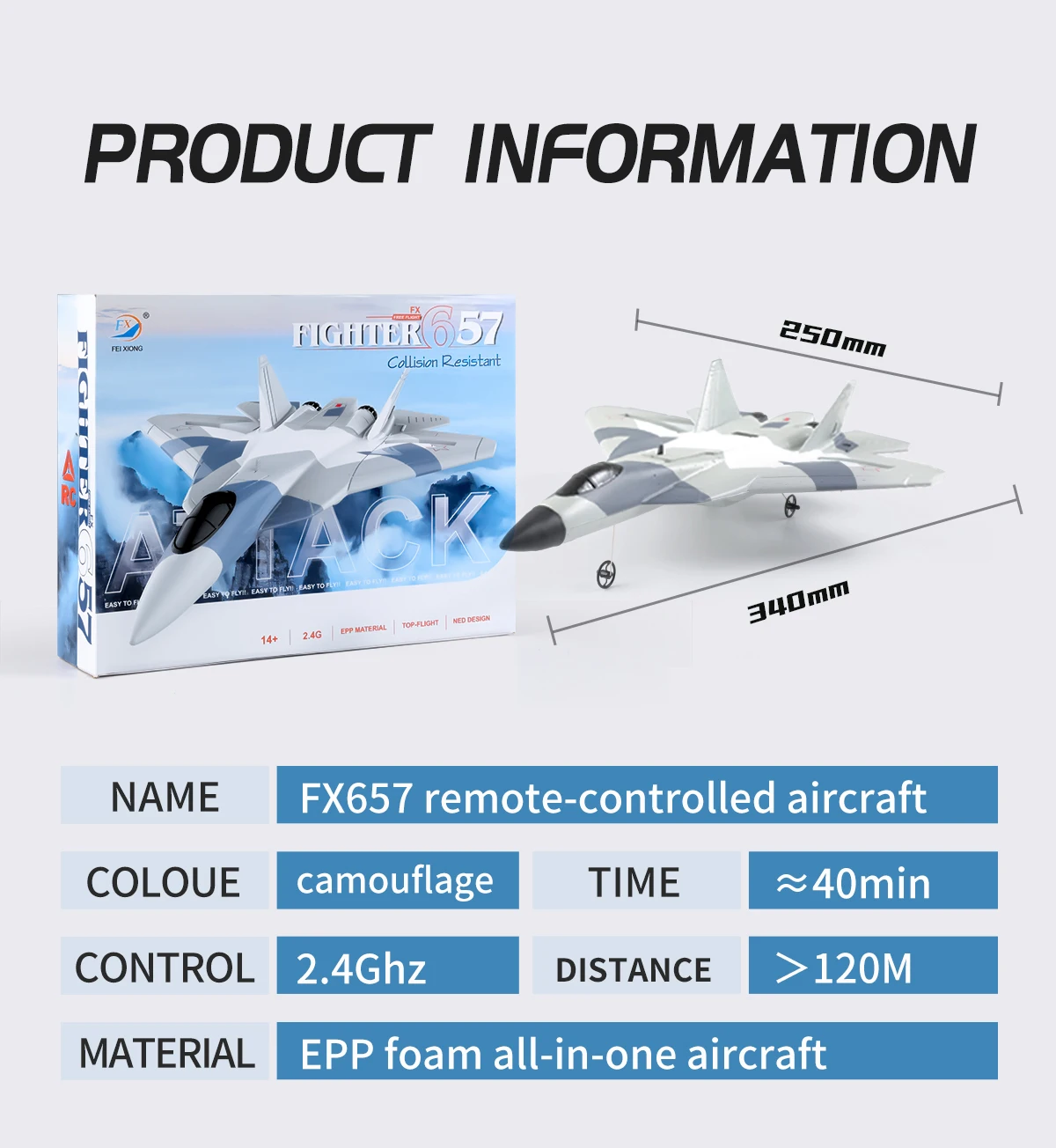 Operate,Easy to Fly.Material: Durable EPP+ABS PlasticRemote Control Distance: ≤120mFlight Time: 12min-15minBattery Capacity: 3.7V 160 mAh