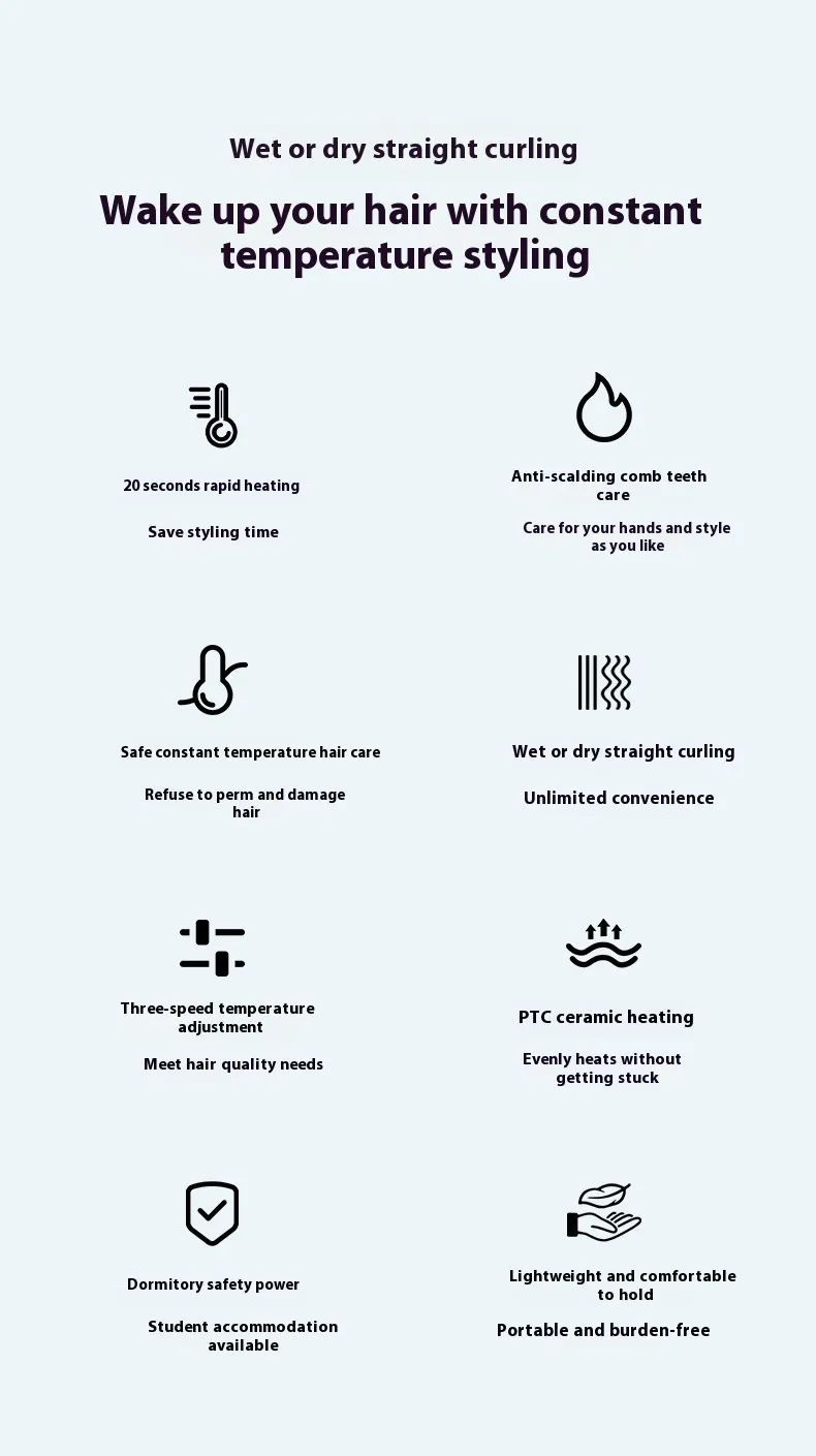 Its lightweight and ergonomic design allow for effortless handling, while the ceramic heating plate minimizes damage by maintaining a consistent, safe temperature. Whether you’re taming flyaways, smoothing curls, or straightening your entire hair, this portable hair straightener comb offers fast and effective results for all hair types.