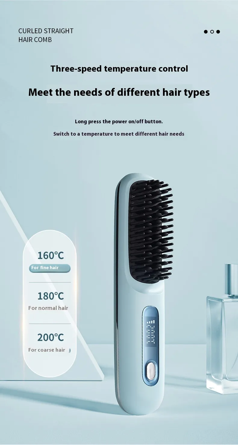 Rechargeable Ceramic Heating Electric Comb Hair Straightener Portable