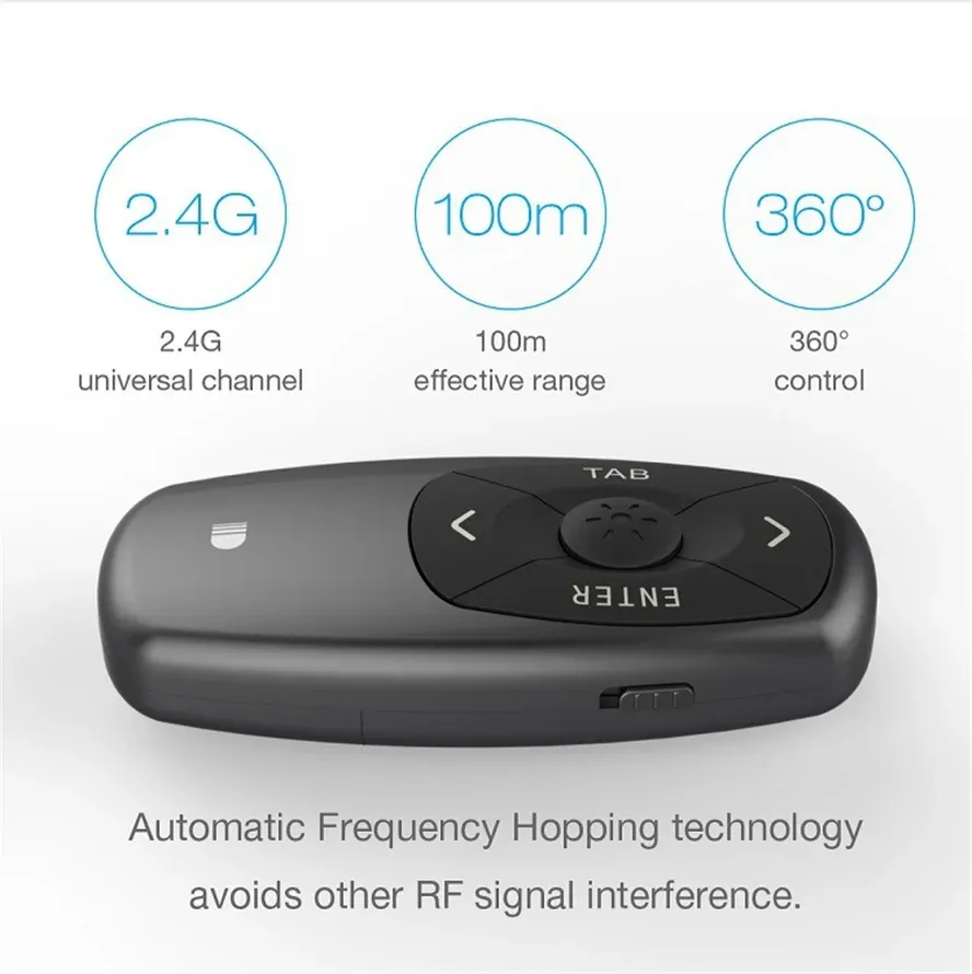 - Wireless Connectivity: Long-range control allows you to move freely while presenting.