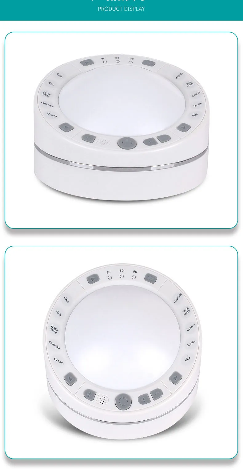This compact and easy-to-use sound machine is perfect for nurseries, bedrooms, offices, or any space where you need to improve focus, relaxation, or sleep quality. The soothing white noise or nature sounds help mask disruptive noises, creating a calm and serene environment for work, sleep, or meditation.