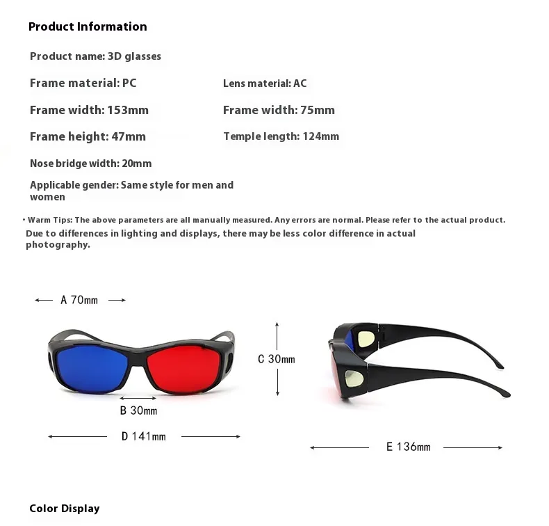 Red-Blue 3D Glasses Set Of Glasses Large Frame