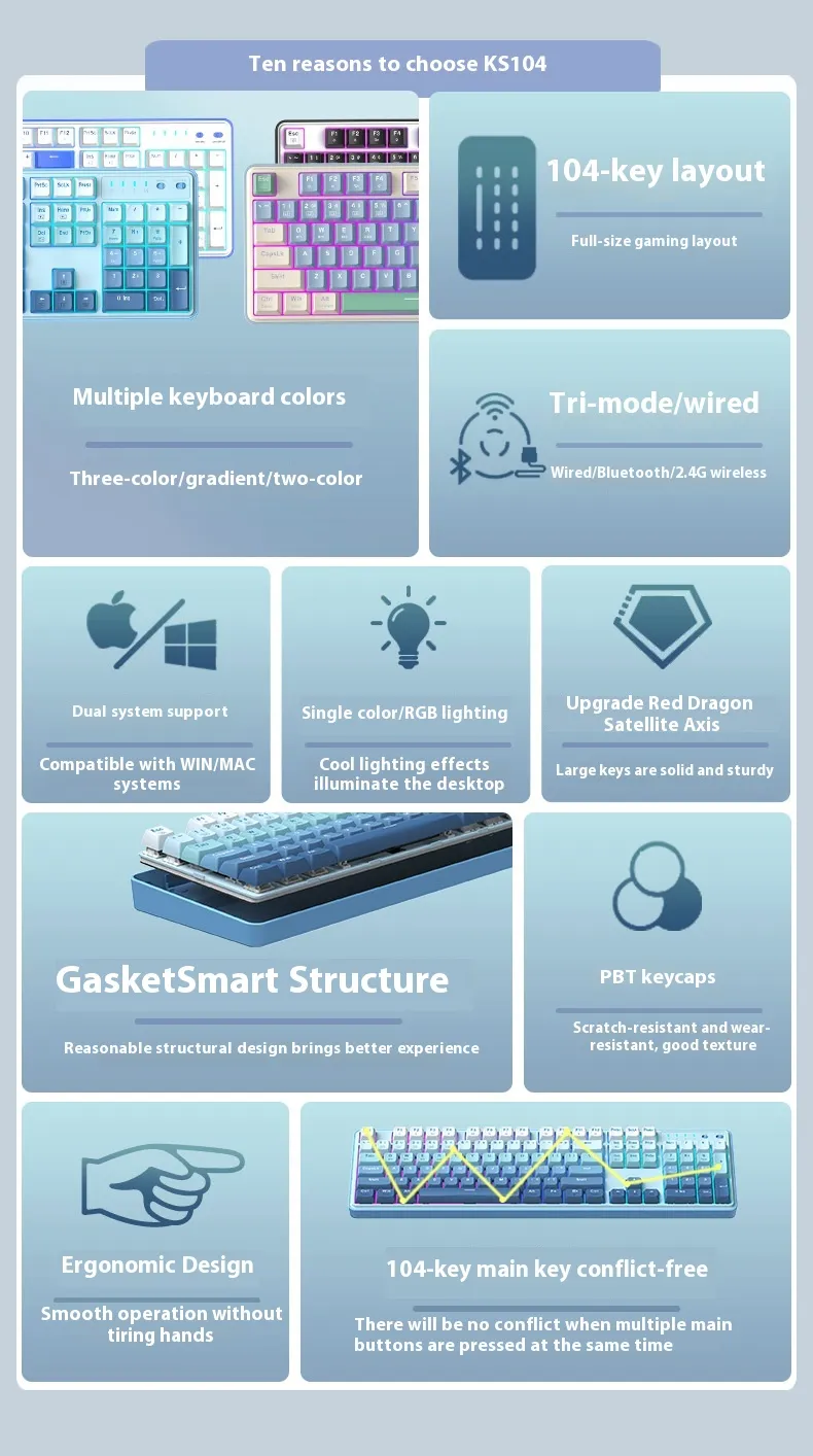 key white blue Three mode RGB fire red axis, 104 key gradient three mode RGB Hydra Zen Frost axis