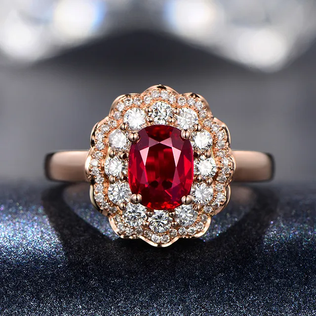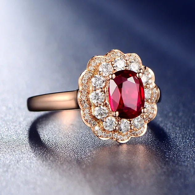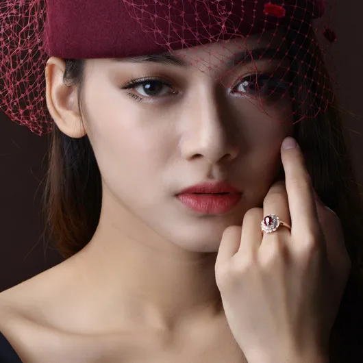 Red Flower Color Treasure Ring Women